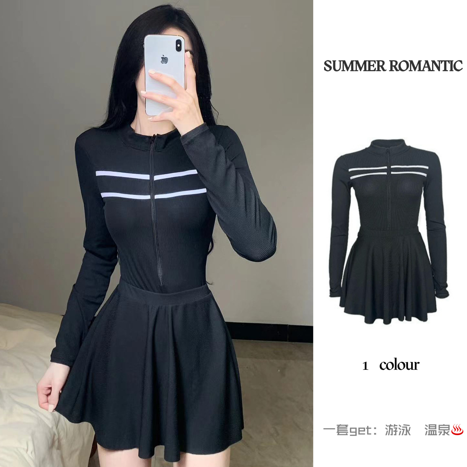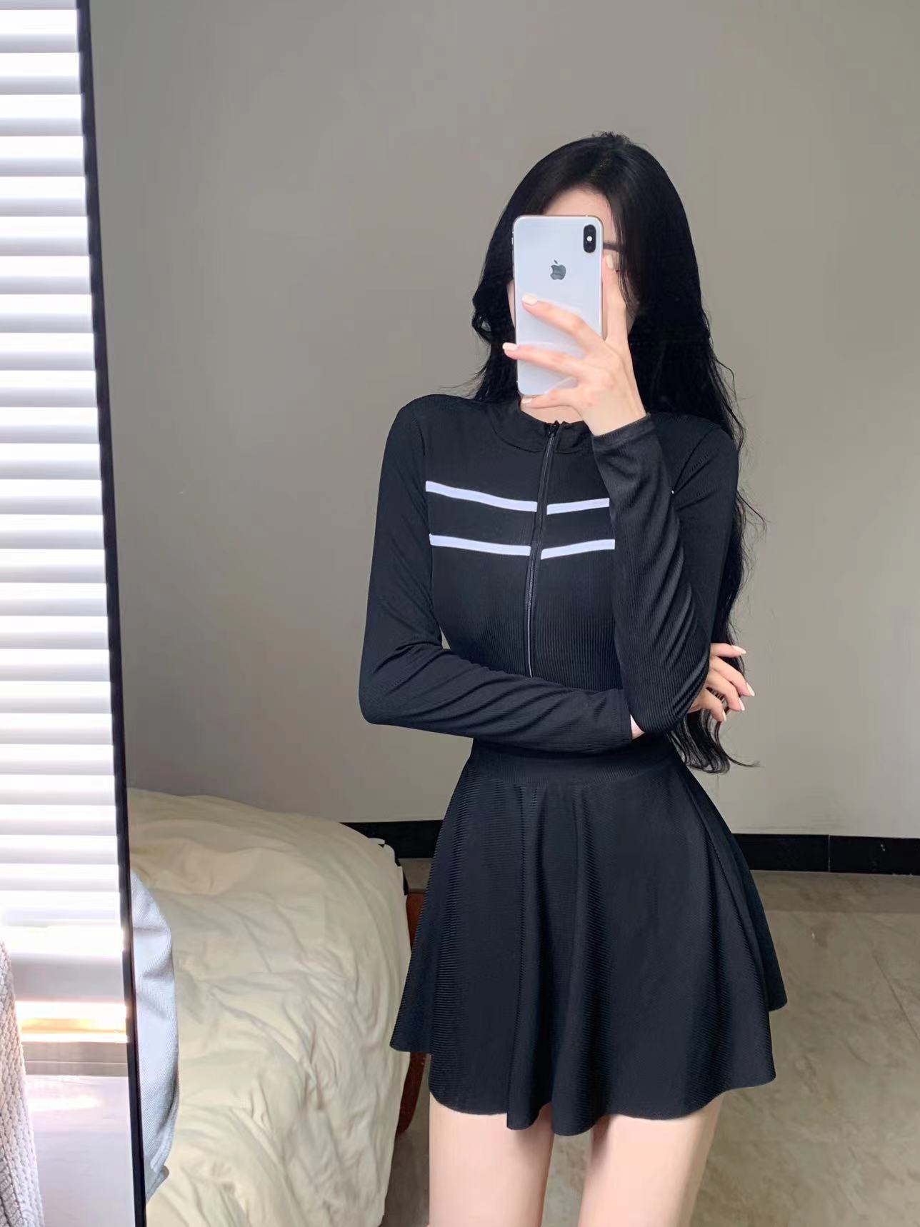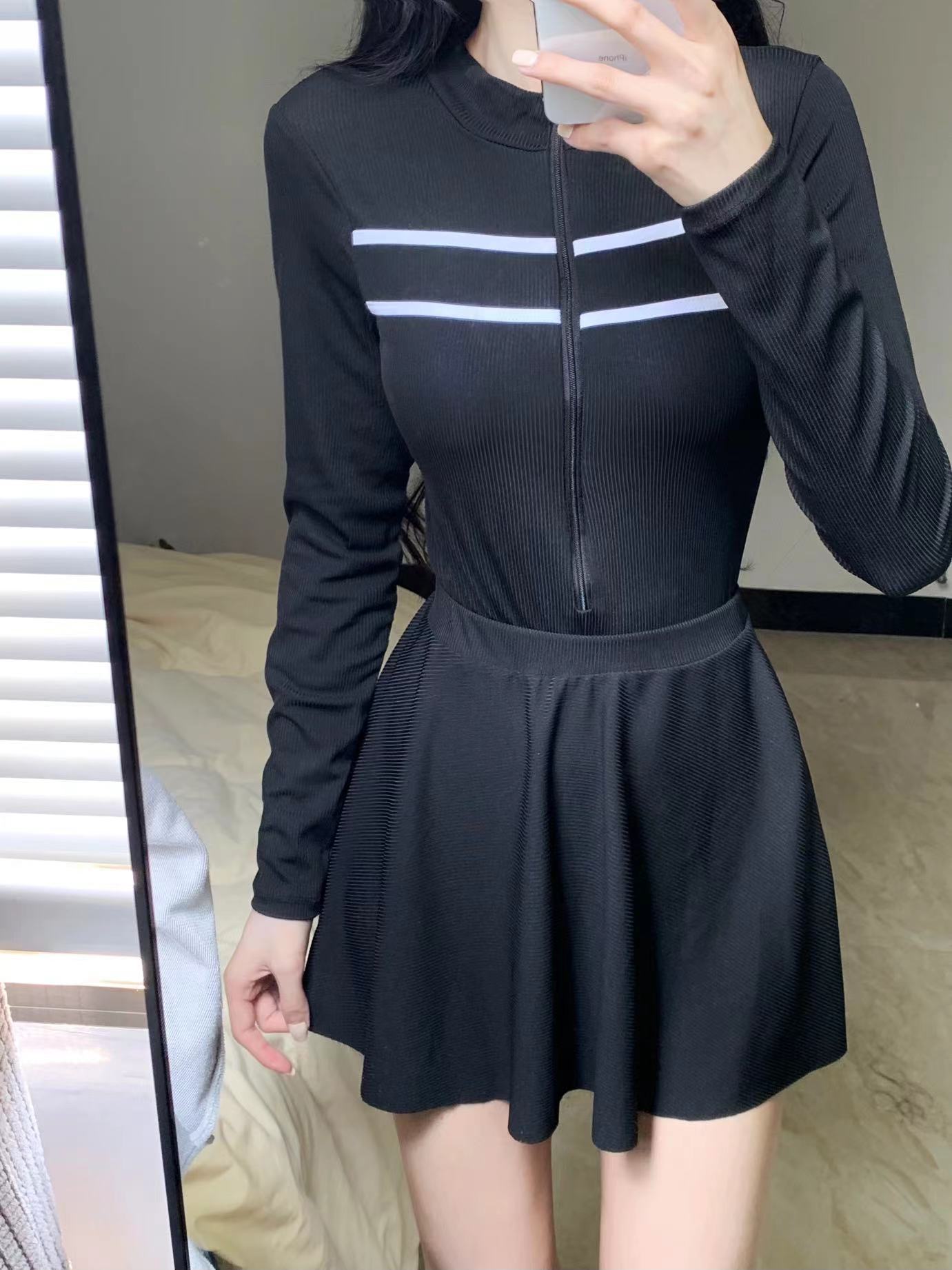 새로운 수영복 여성 여름 원피스 트라이앵글 스커트 투피스 긴소매 보수 스포츠 작은 가슴 학생 슬리밍 음영스토어 가기