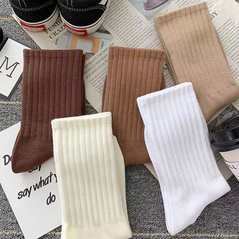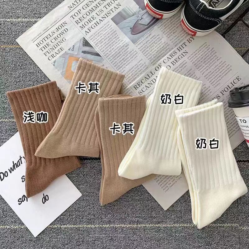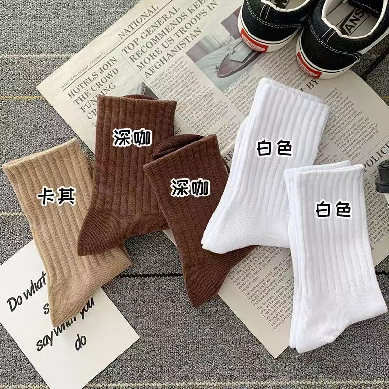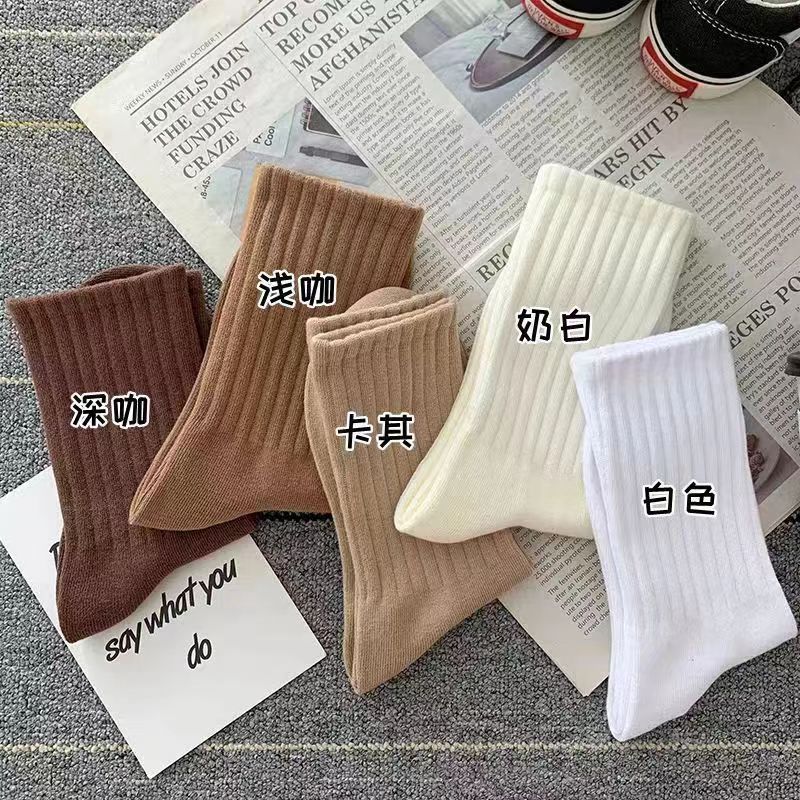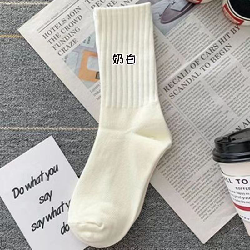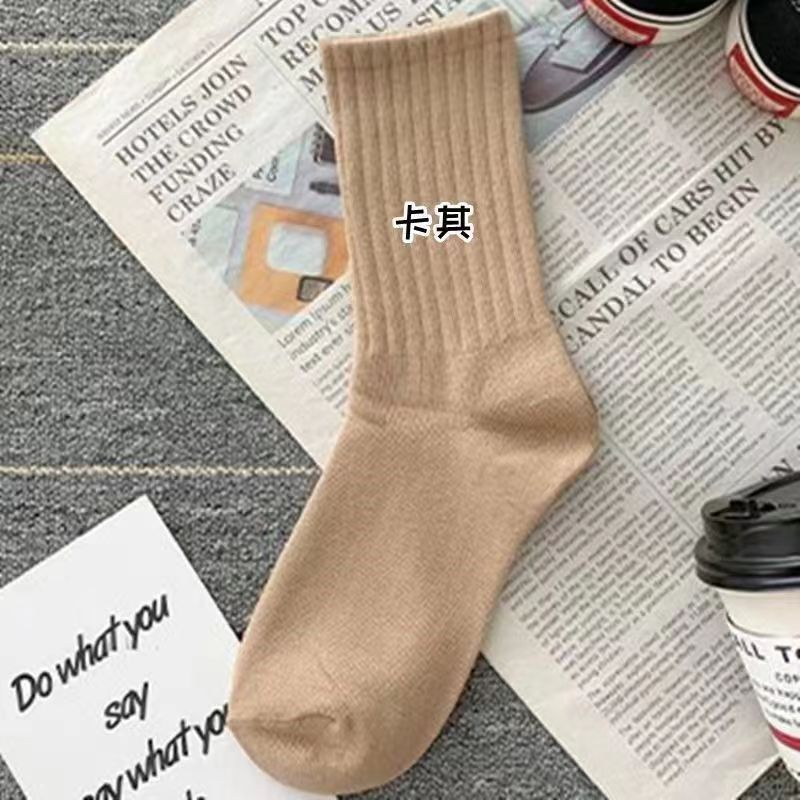 Zhuji 양말 여자 중간 배럴 가을 및 겨울 Ins 트렌디 올매치 솔리드 컬러 롱 배럴 스포츠 커플 스타킹 여성 높은 가치