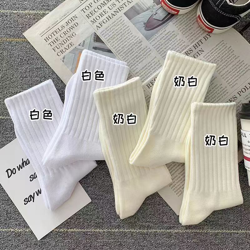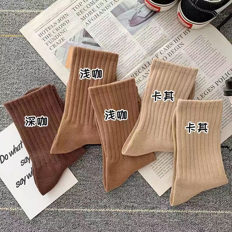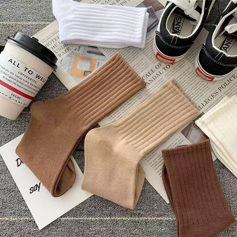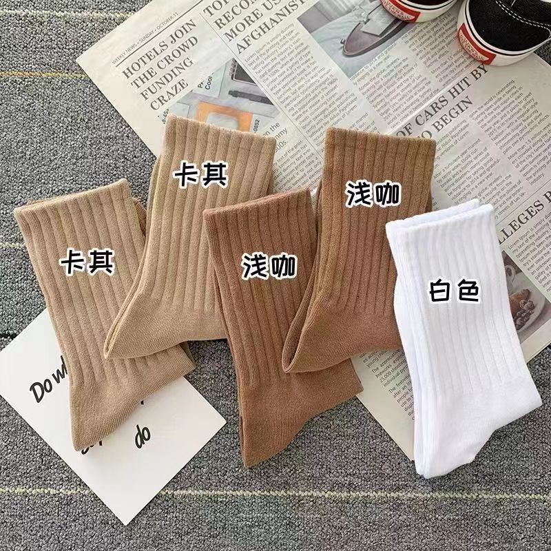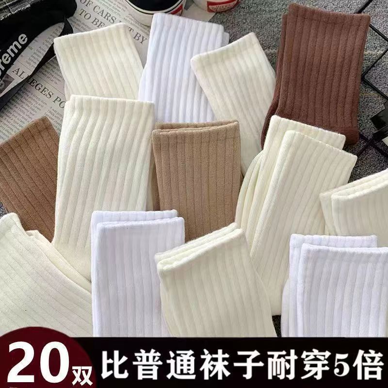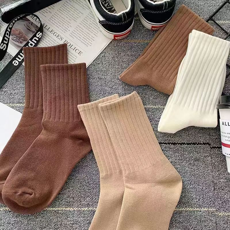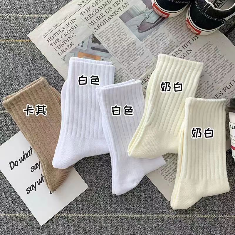 Zhuji 양말 여자 중간 배럴 가을 및 겨울 Ins 트렌디 올매치 솔리드 컬러 롱 배럴 스포츠 커플 스타킹 여성 높은 가치