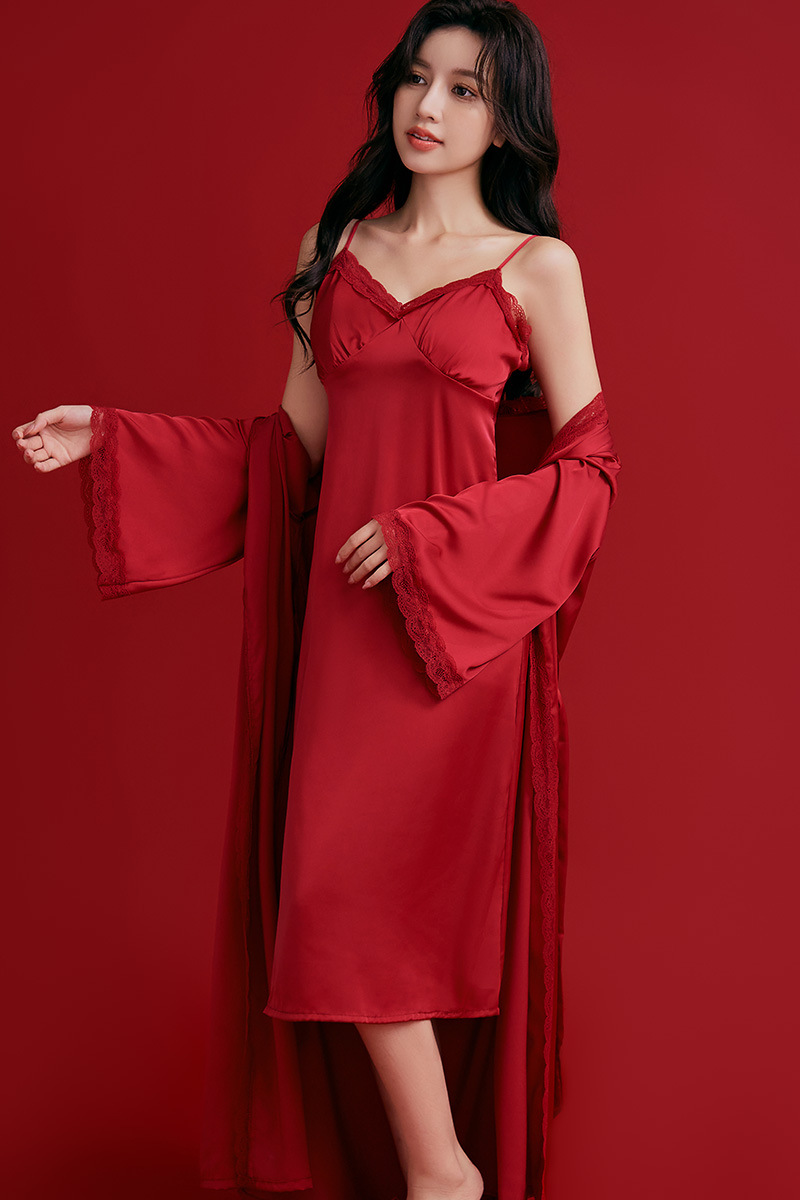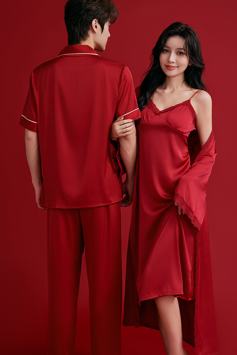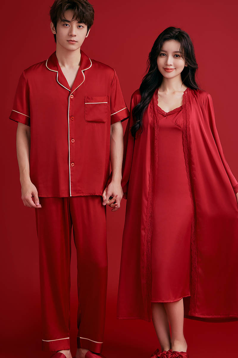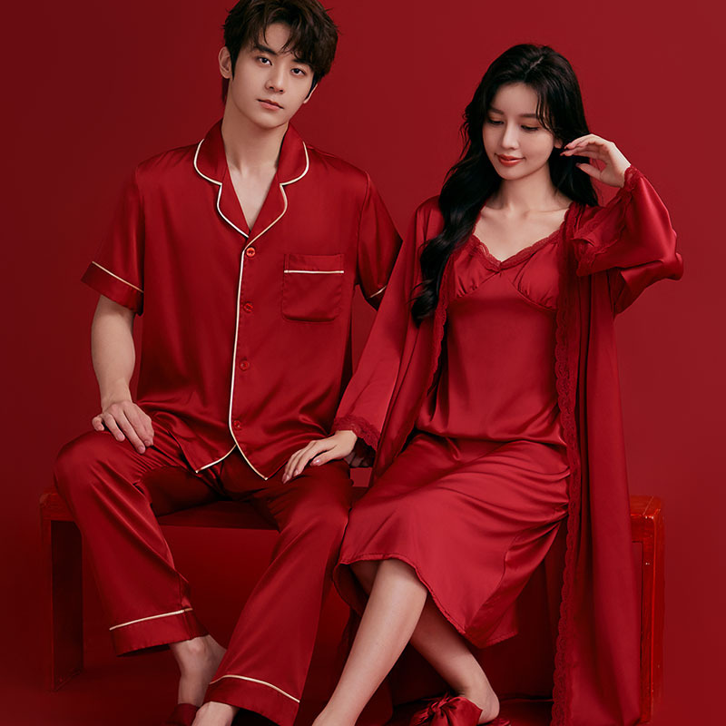 웨딩 파자마 여성 신부 아침 가운 신혼 부부 세트 남성 아이스 실크 레드 하이 엔드 웨딩 라이프 년 홈 의류스토어 가기