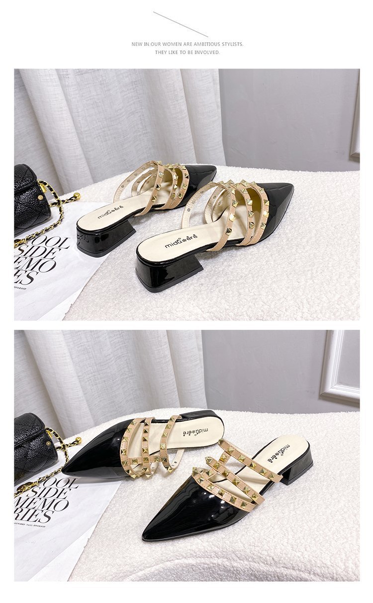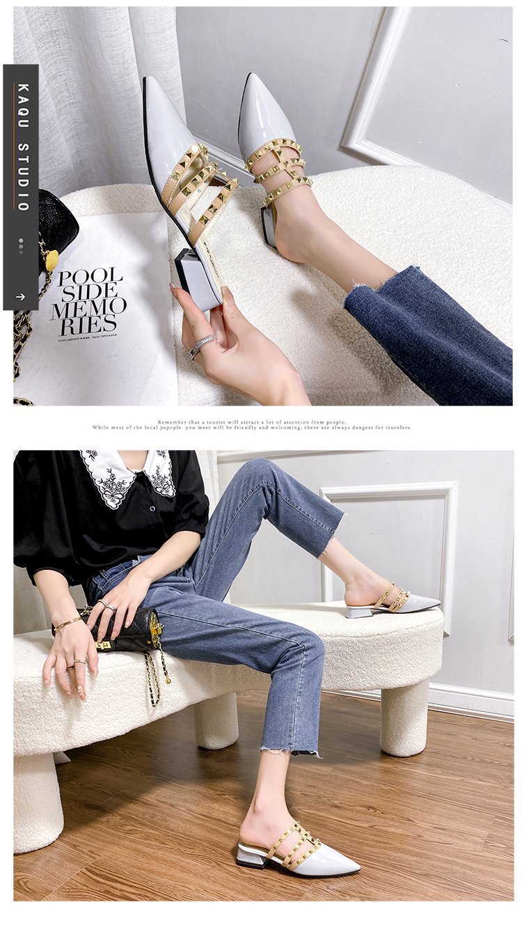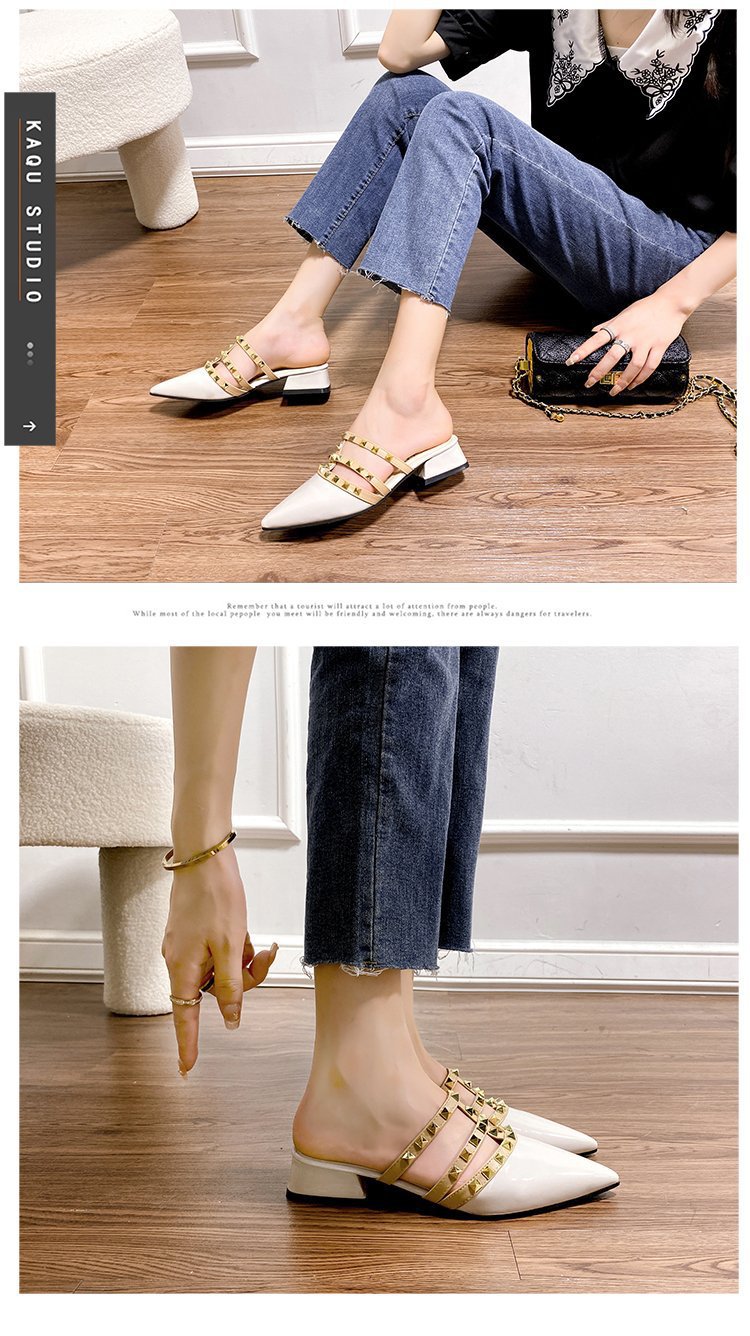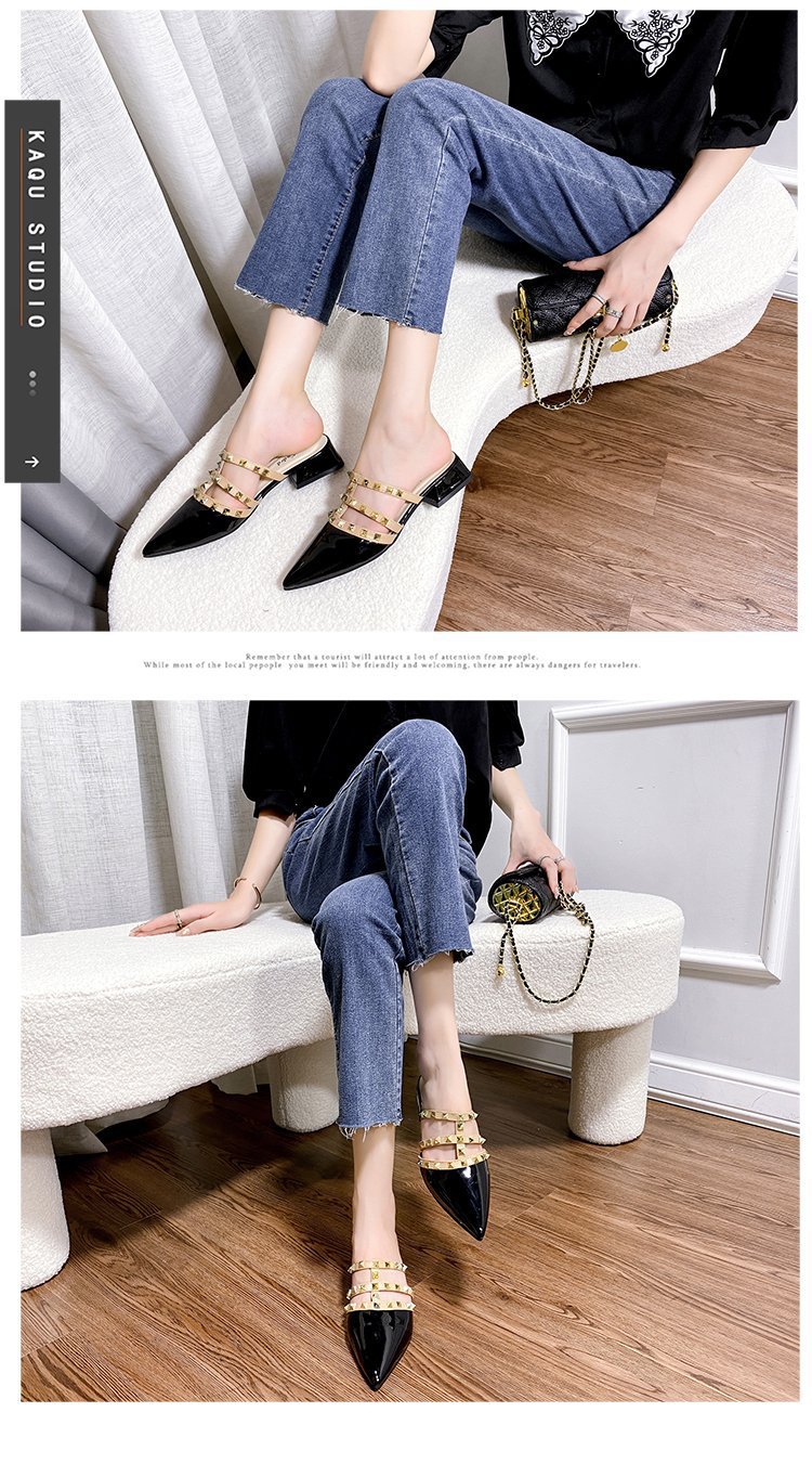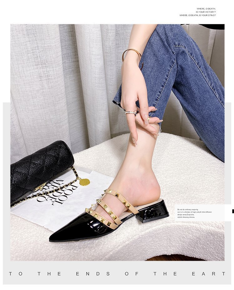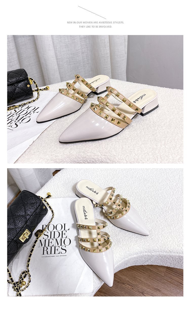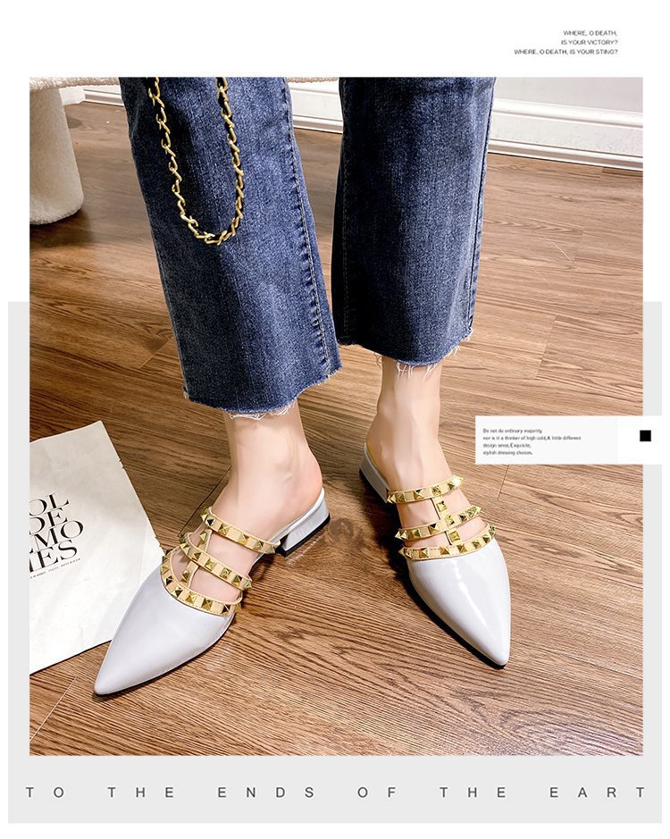 리벳 신발 프랑스 스타일 리벳 샌들 여성 여름 의상 플랫 여름 한국식 특허 가죽 뾰족한 발가락 반 슬리퍼