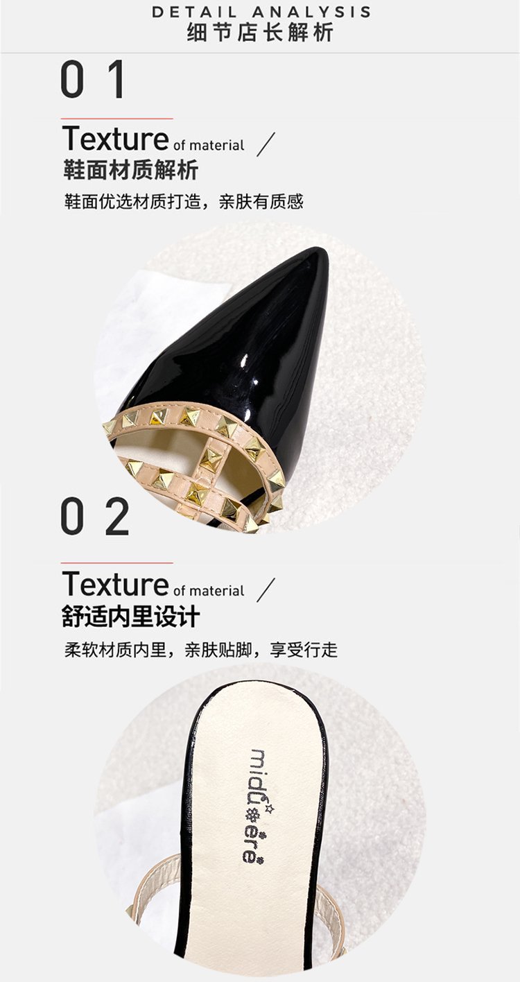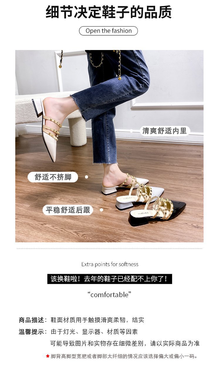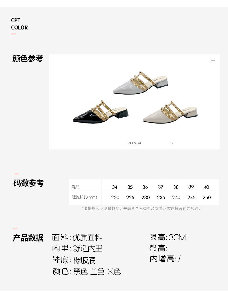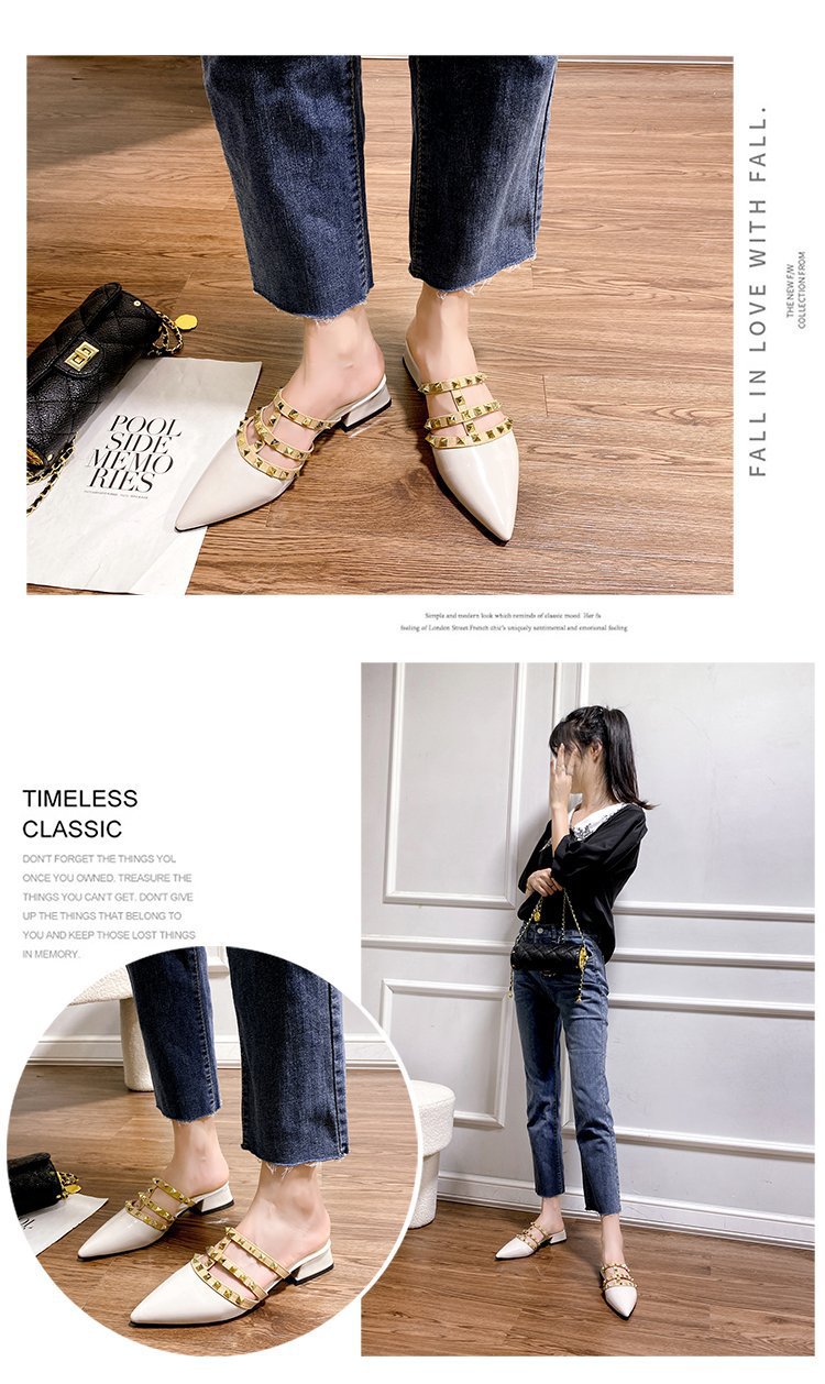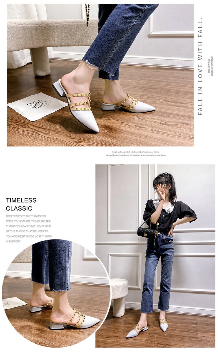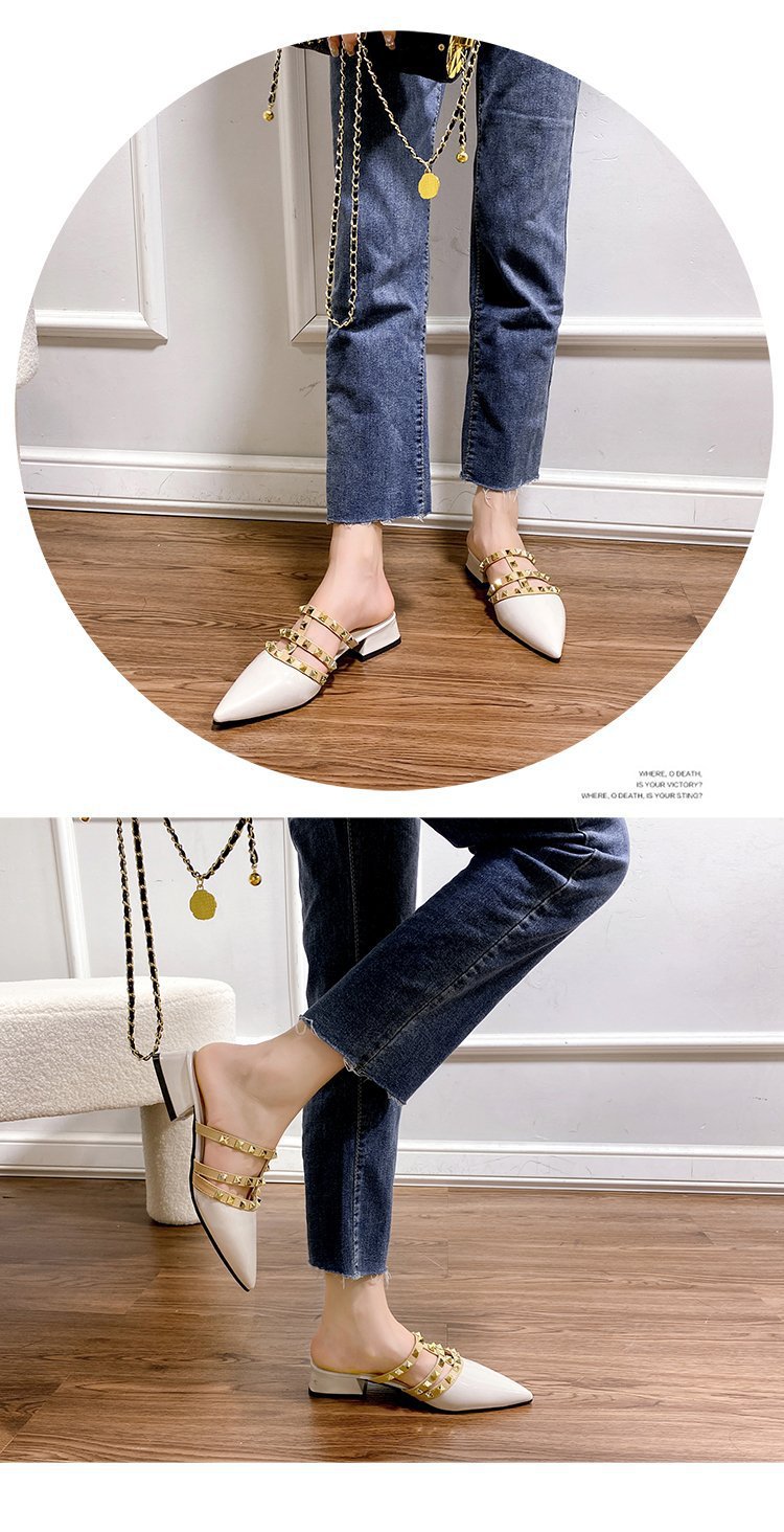 리벳 신발 프랑스 스타일 리벳 샌들 여성 여름 의상 플랫 여름 한국식 특허 가죽 뾰족한 발가락 반 슬리퍼