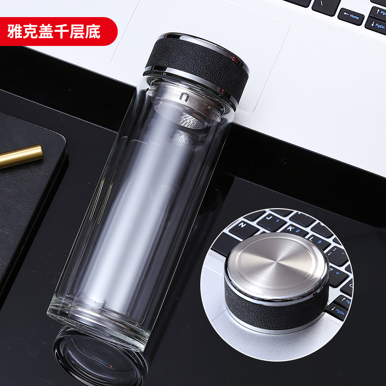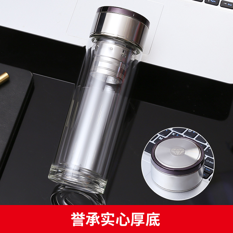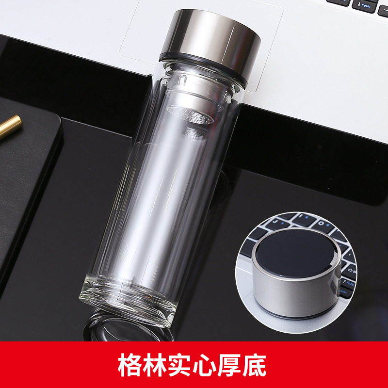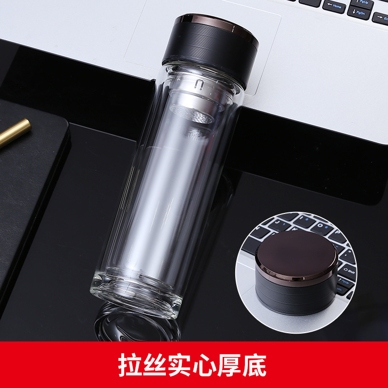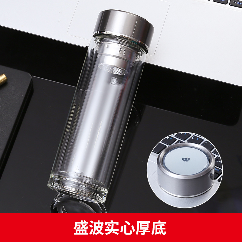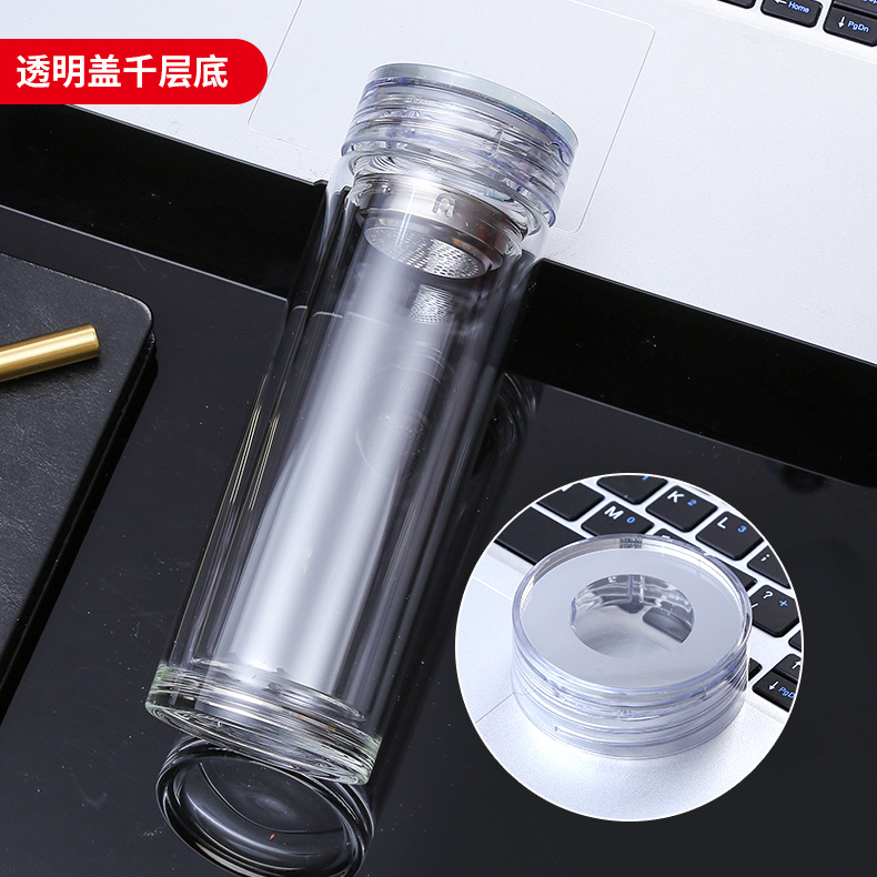 맞춤형 이중 단열 유리컵, 투명 로고 인쇄 광고컵, 비즈니스 선물용, 누수 방지 및 방폭 차컵