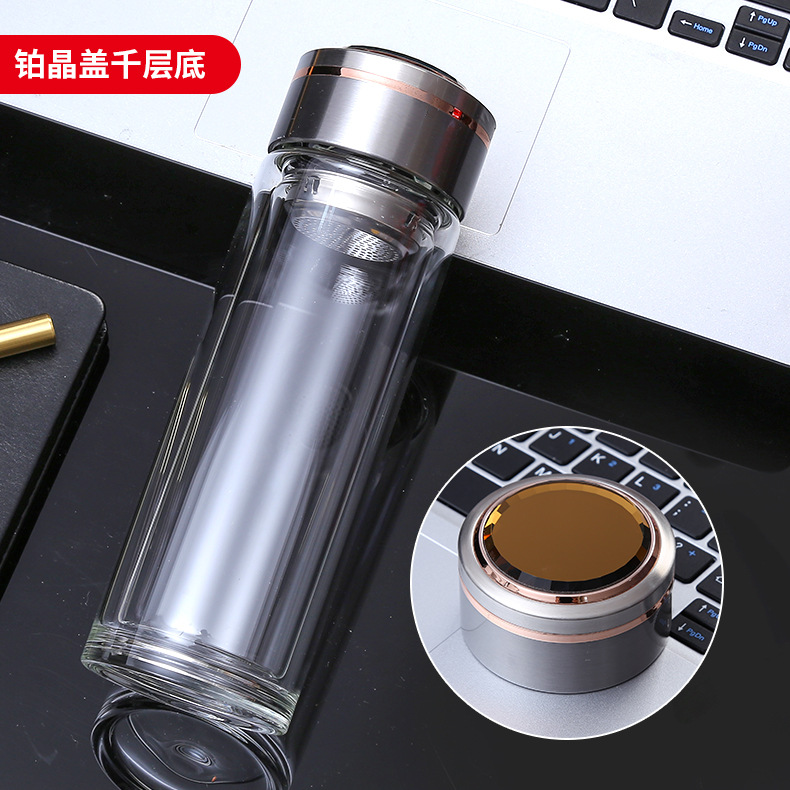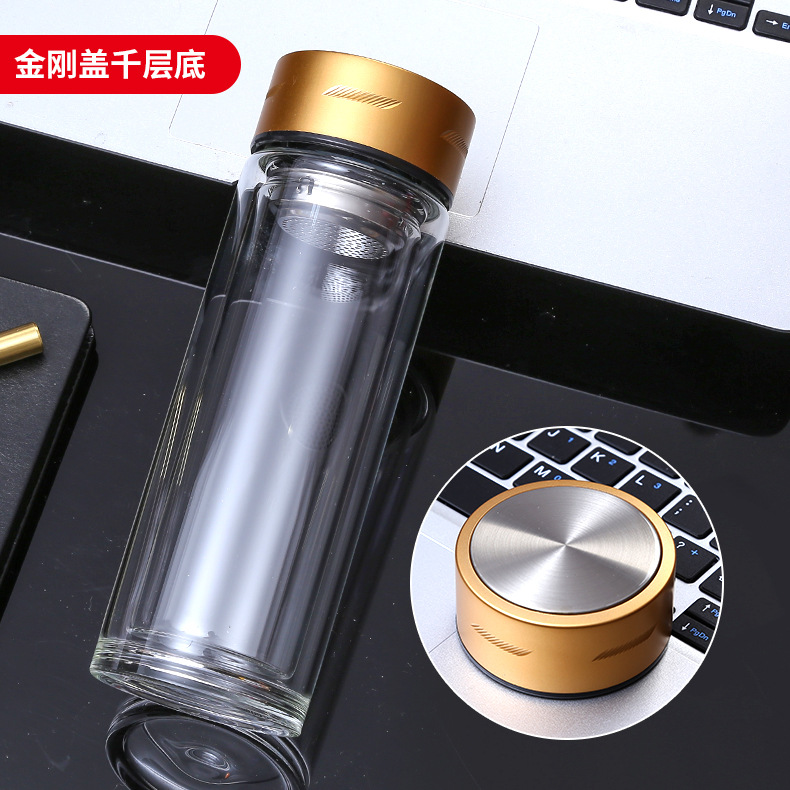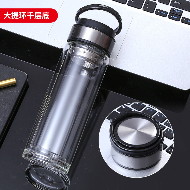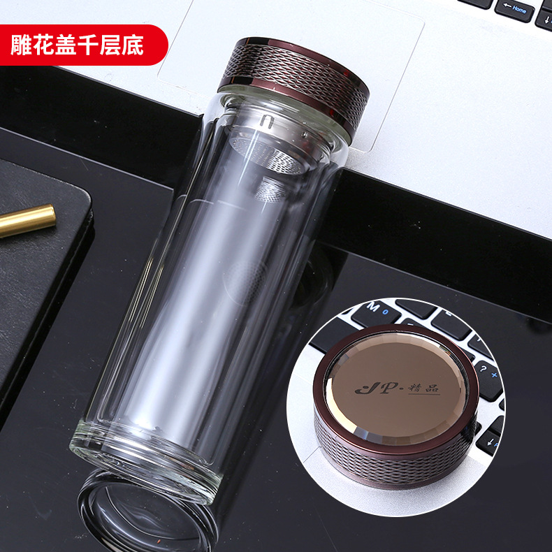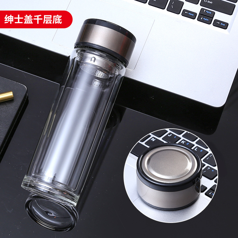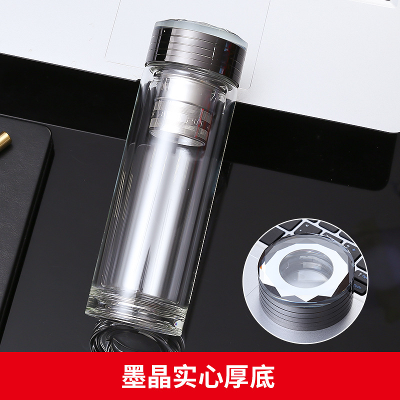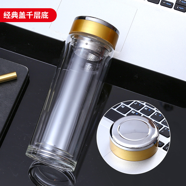 맞춤형 이중 단열 유리컵, 투명 로고 인쇄 광고컵, 비즈니스 선물용, 누수 방지 및 방폭 차컵