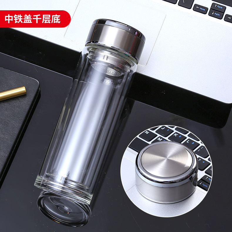 맞춤형 이중 단열 유리컵, 투명 로고 인쇄 광고컵, 비즈니스 선물용, 누수 방지 및 방폭 차컵스토어 가기