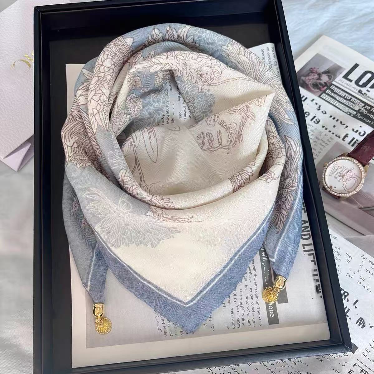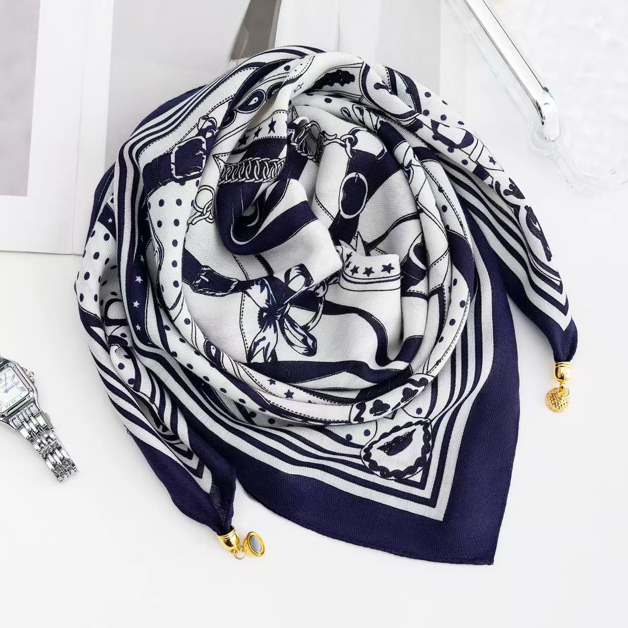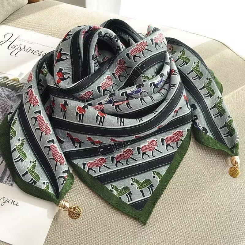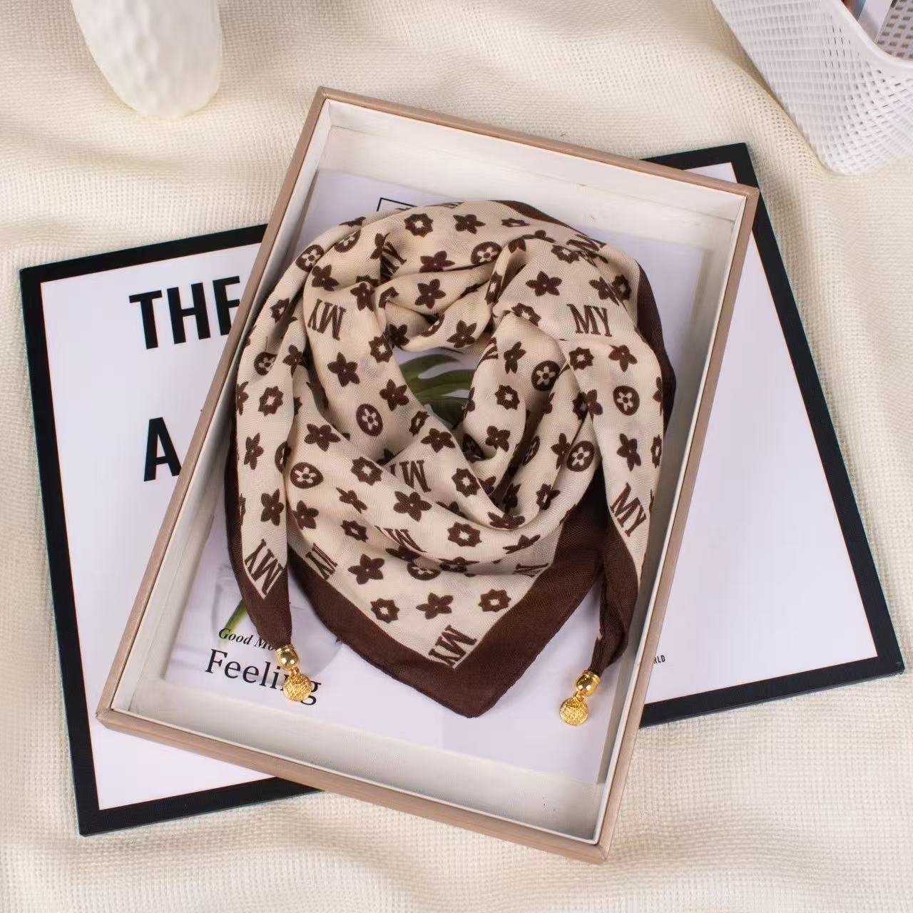 자석 삼각형 목 보호 스카프 여성용 가을 겨울 면 린넨 실크 스카프 목 스카프 체크무늬 리본스토어 가기