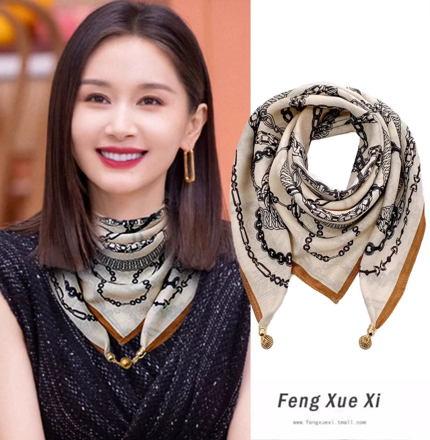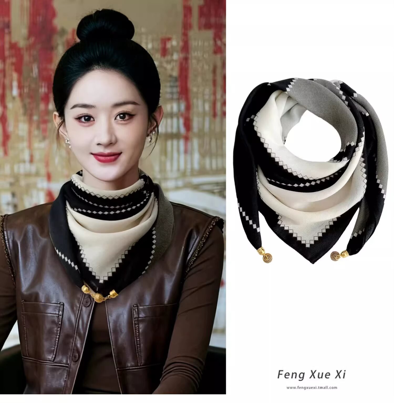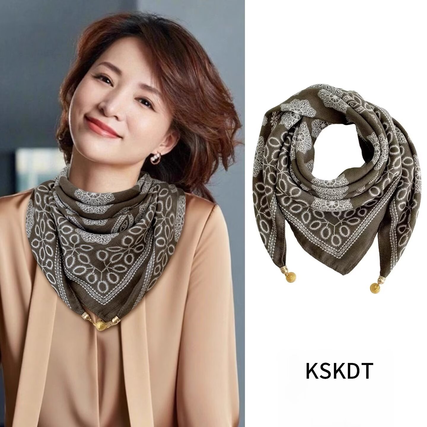 자석 삼각형 목 보호 스카프 여성용 가을 겨울 면 린넨 실크 스카프 목 스카프 체크무늬 리본스토어 가기