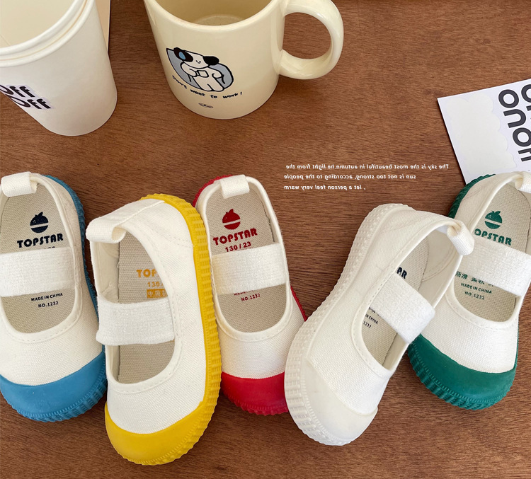 TS 정품 어린이 캔버스 신발 봄과 가을 소년과 소녀 화이트 신발 유치원 체조 신발 소프트 단독 실내 신발 1232