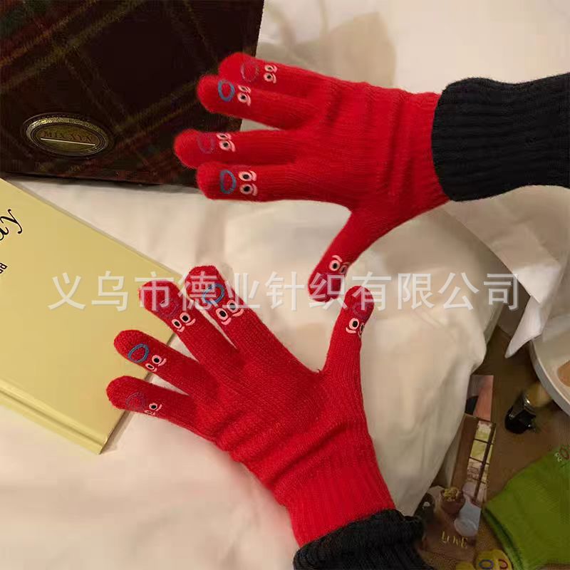 재미 장갑 2024 새로운 겨울 여성의 귀여운 터치 스크린 발신 손가락 장갑 자전거 따뜻한 감기 보호를 타고 학생