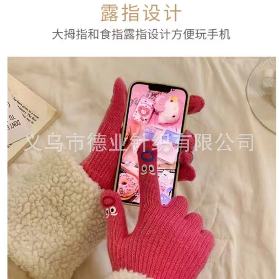 재미 장갑 2024 새로운 겨울 여성의 귀여운 터치 스크린 발신 손가락 장갑 자전거 따뜻한 감기 보호를 타고 학생스토어 가기