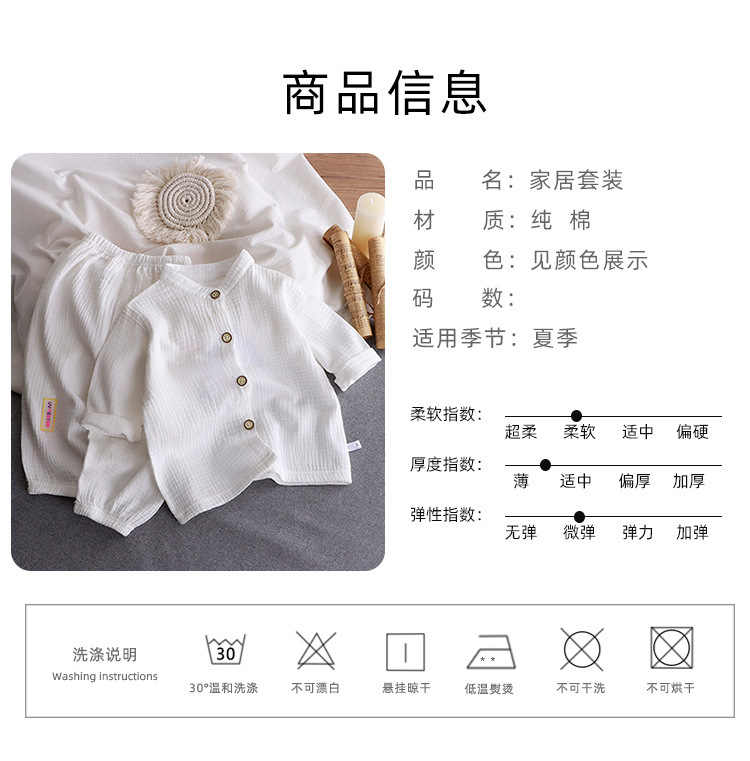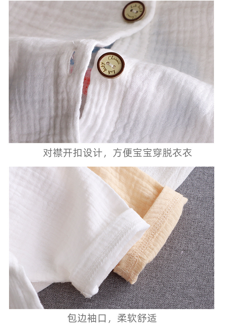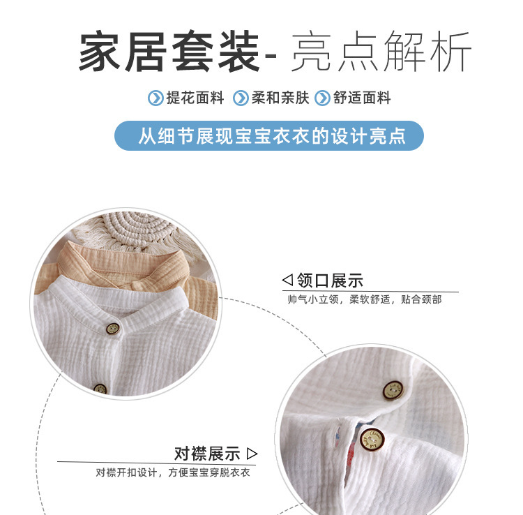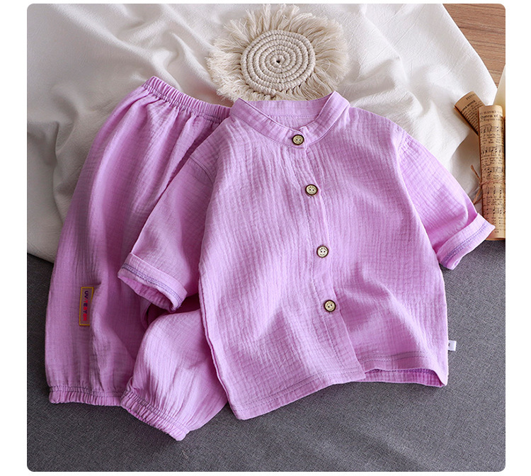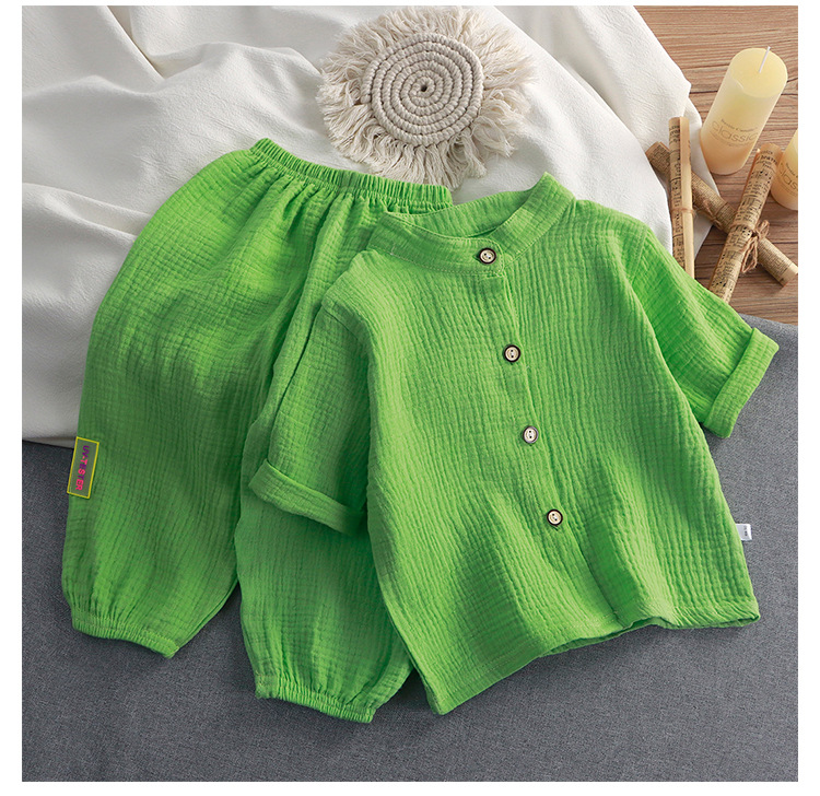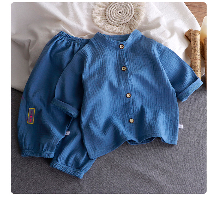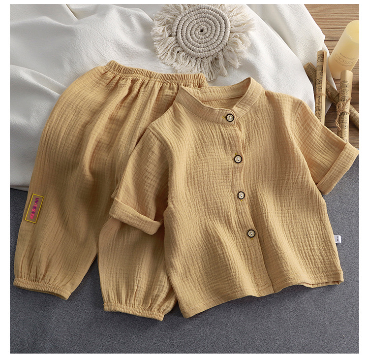 어린이 스탠드 칼라 면사 세트 여름 얇은 소년 소녀 면화 홈 옷 아기 거즈 에어컨 옷 아동복스토어 가기