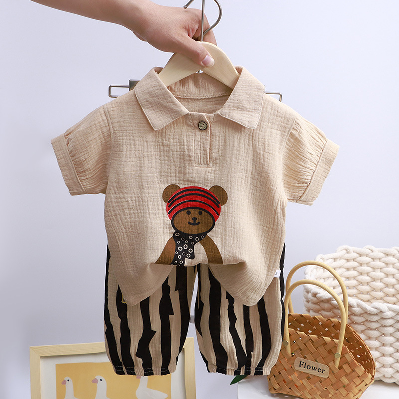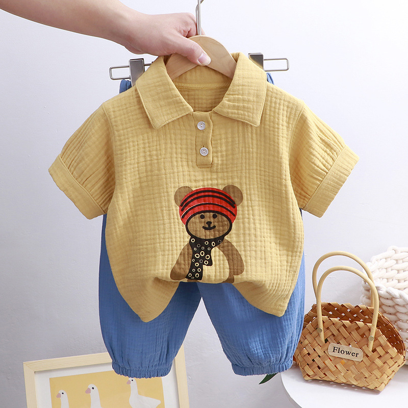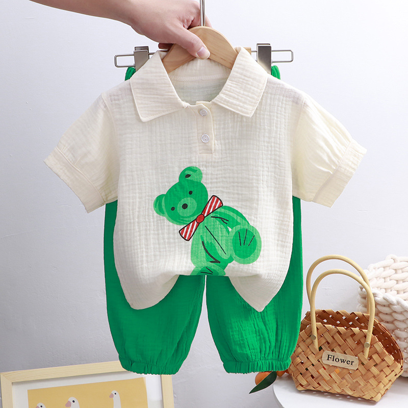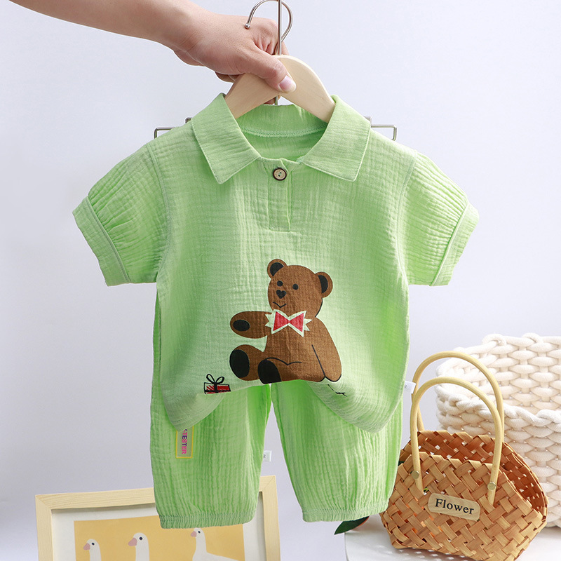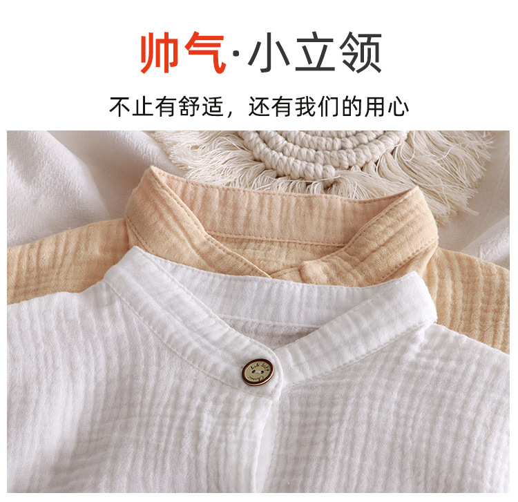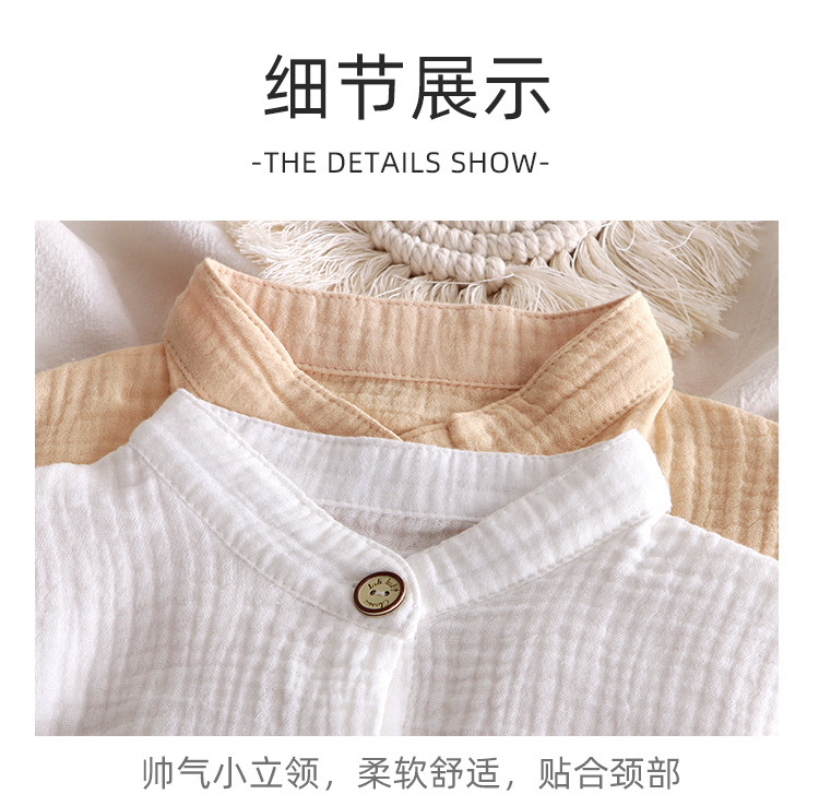 어린이 스탠드 칼라 면사 세트 여름 얇은 소년 소녀 면화 홈 옷 아기 거즈 에어컨 옷 아동복스토어 가기