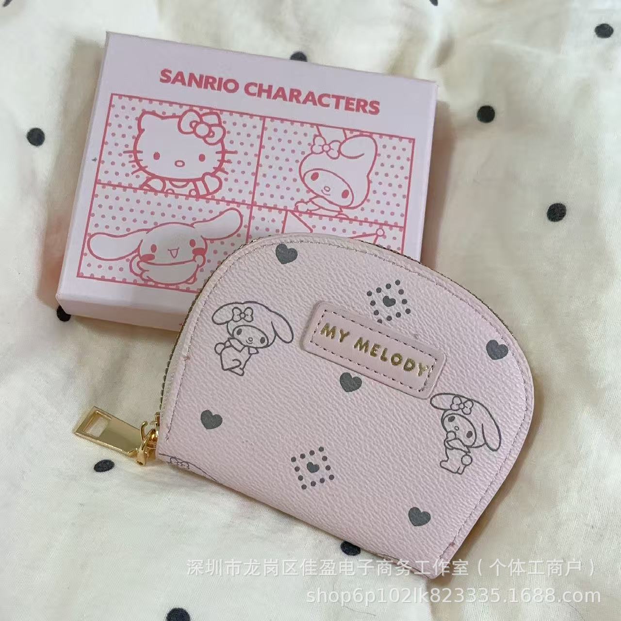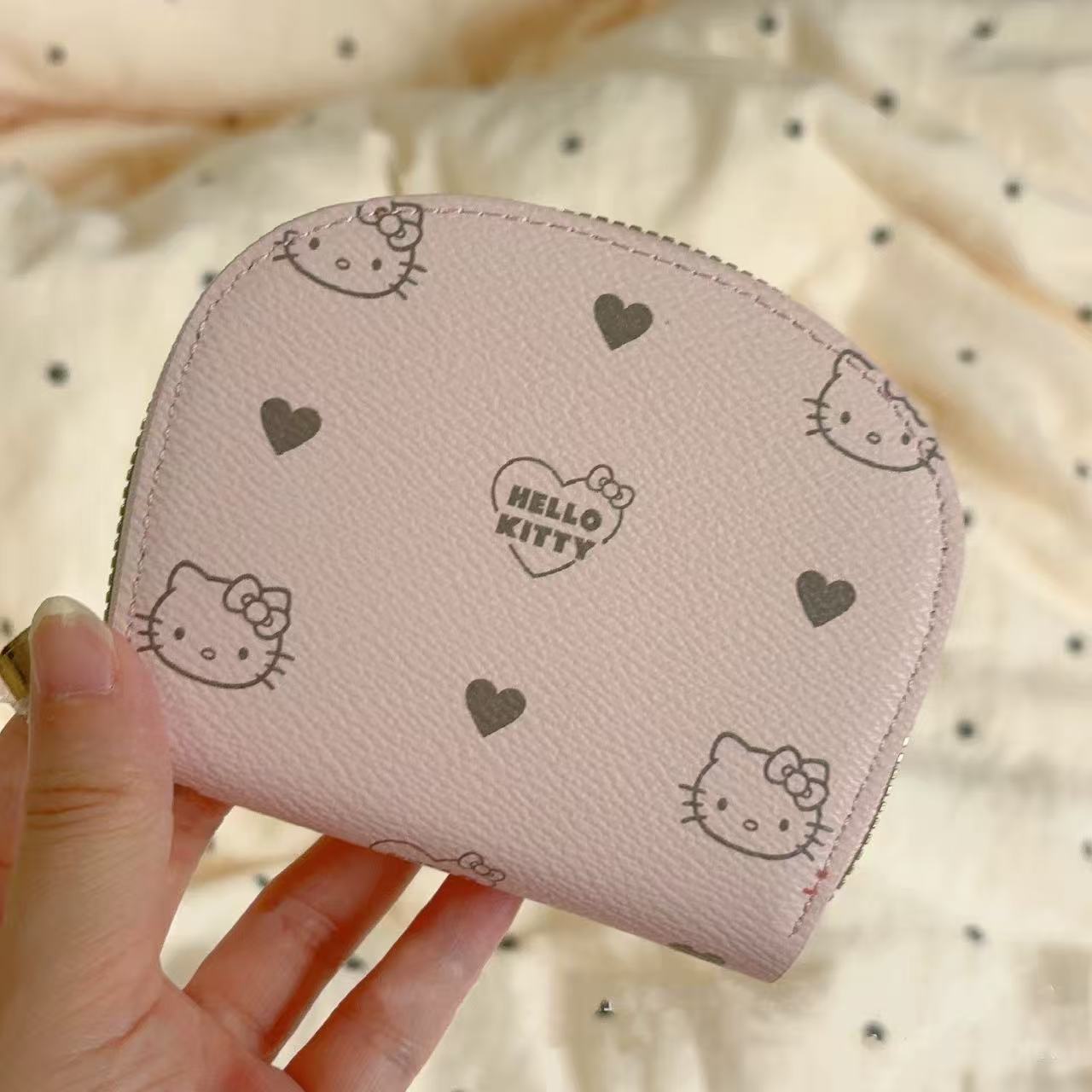 귀여운 헬로 키티 빈티지 카드 가방 소녀 심장 오르간 지퍼 ID 가방 저장 가방 경량 휴대용 미니 동전 지갑