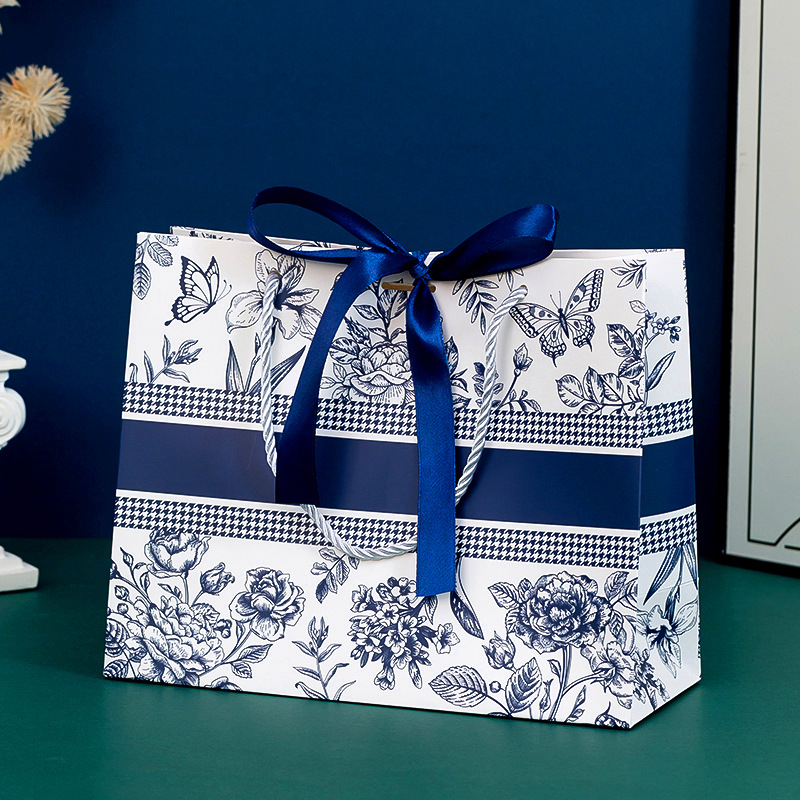 블루 빈티지 꽃 선물 가방 고급 느낌 동반 선물 가방 라이트 럭셔리 생일 포장 가방 국경 간 활 핸드백스토어 가기