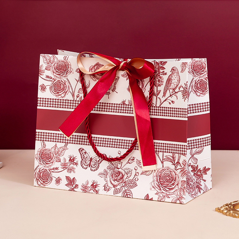 • 단어가없는 붉은 꽃 더블 리본; 흰색 판지; 스몰 사이즈 18*10*16cm