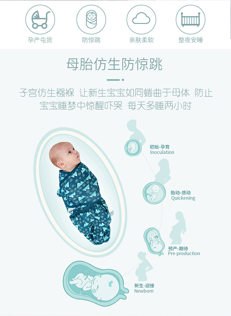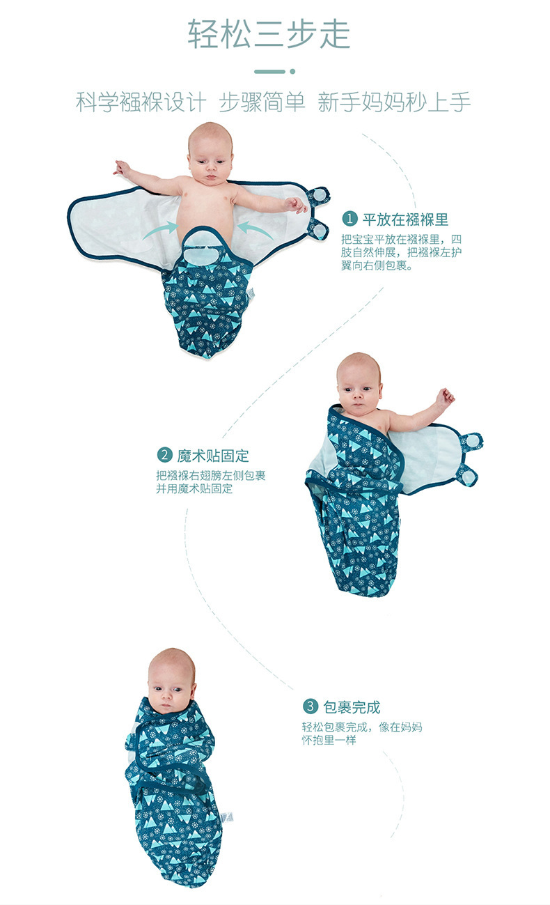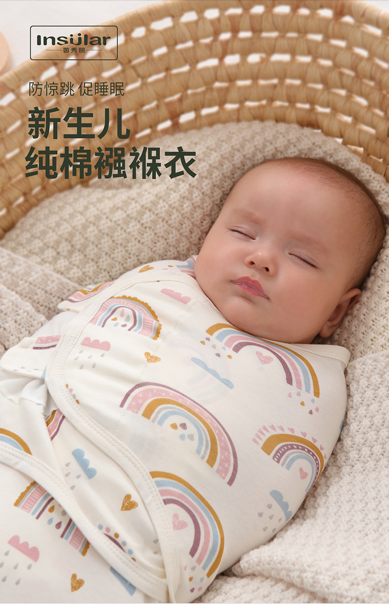 全棉婴儿襁褓巾新生儿防惊跳襁褓睡袋印花四季婴儿睡袋跨境