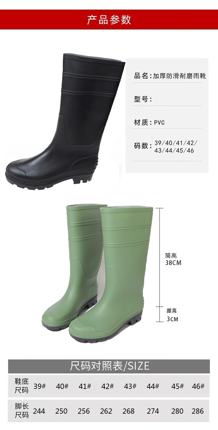 남성용 젖빛 장화 물 신발 남성용 방수 미끄럼 방지 하이 탑 높은 배럴 수출 대외 무역 무광택 장화 도매 물 신발