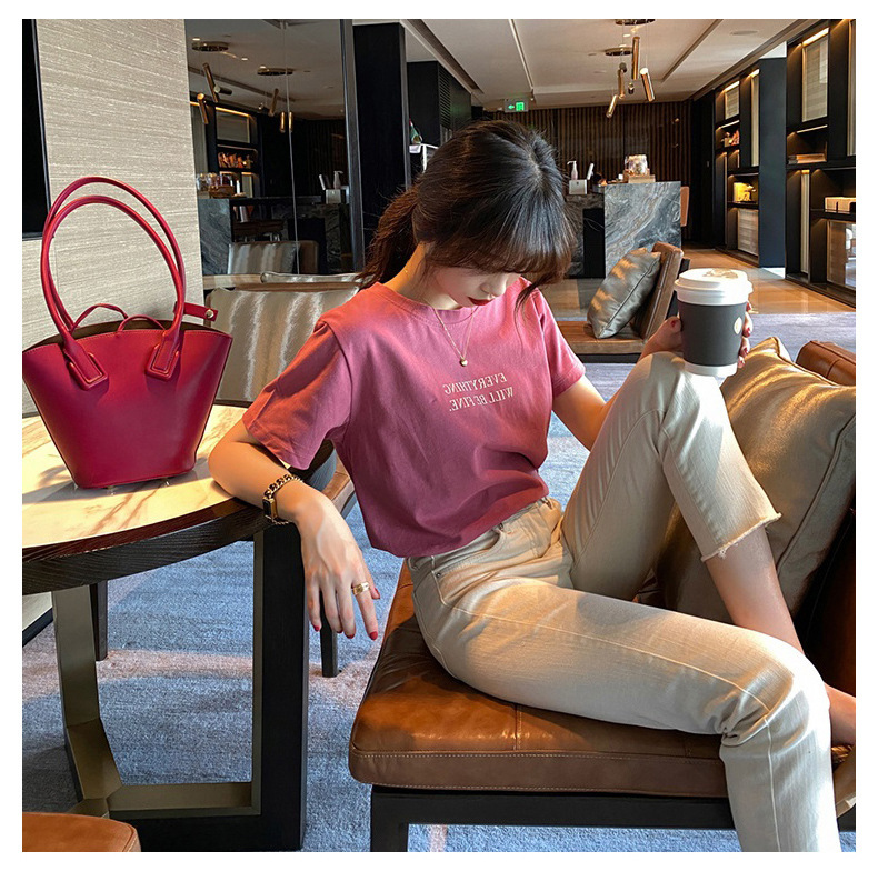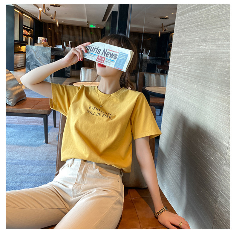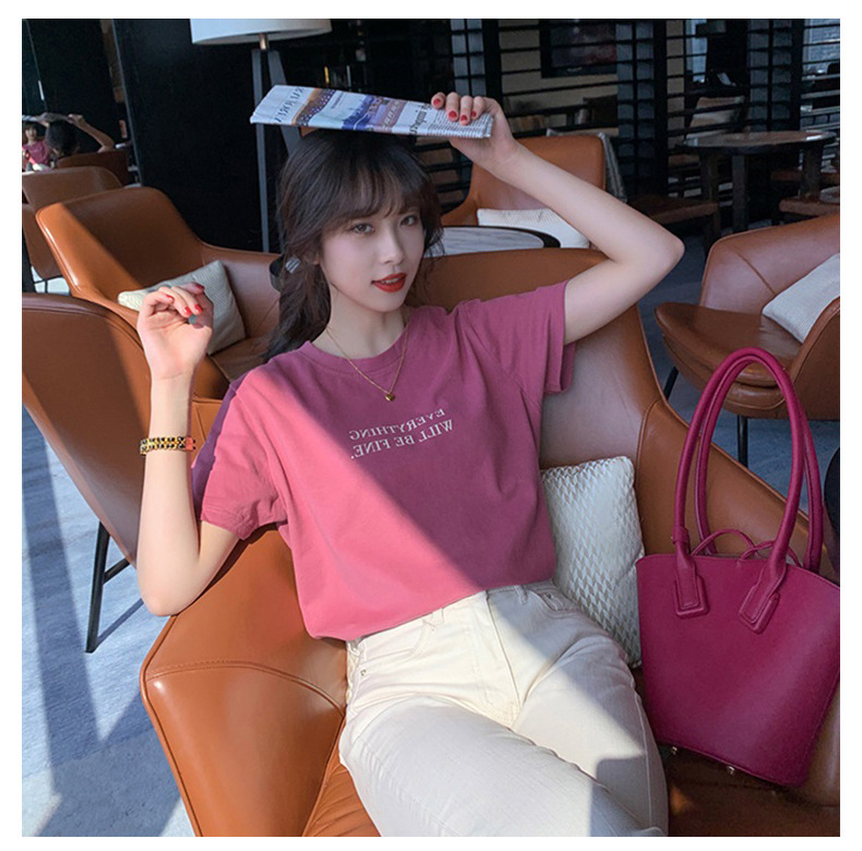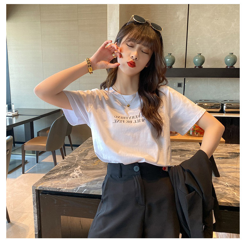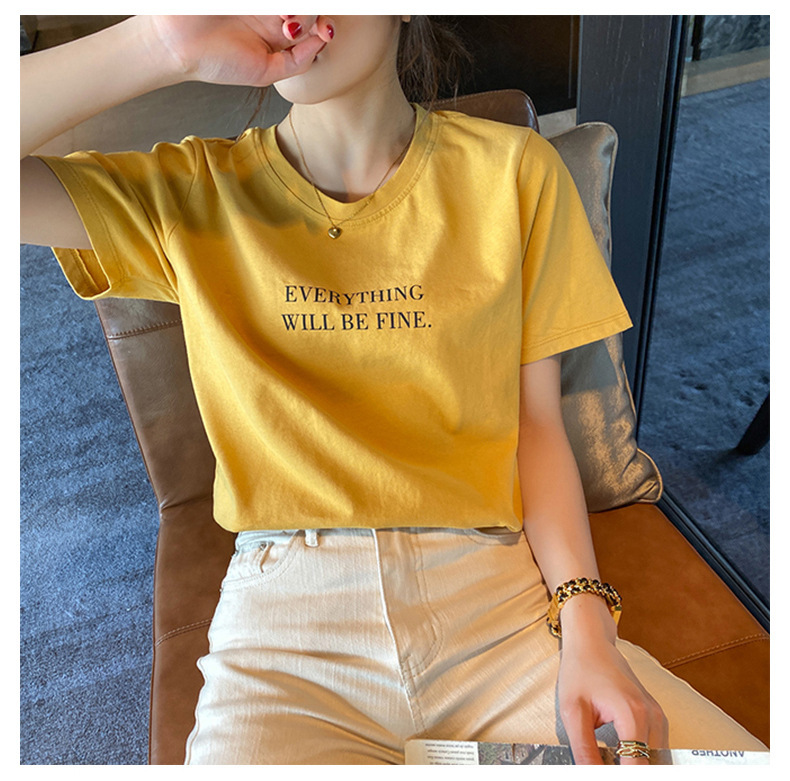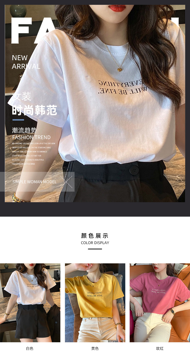 短袖T恤女装夏季2023年新款打底圆领上衣服印花宽松印花体恤T恤女