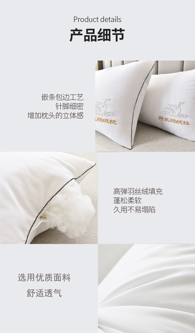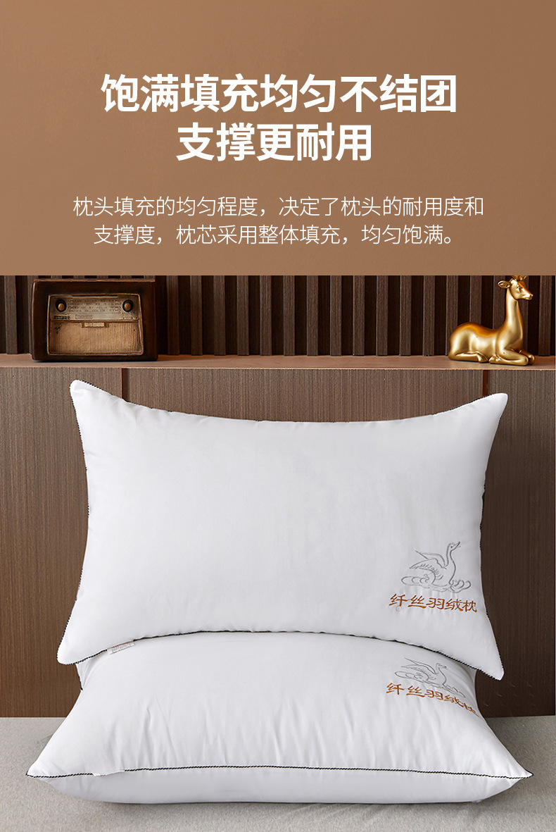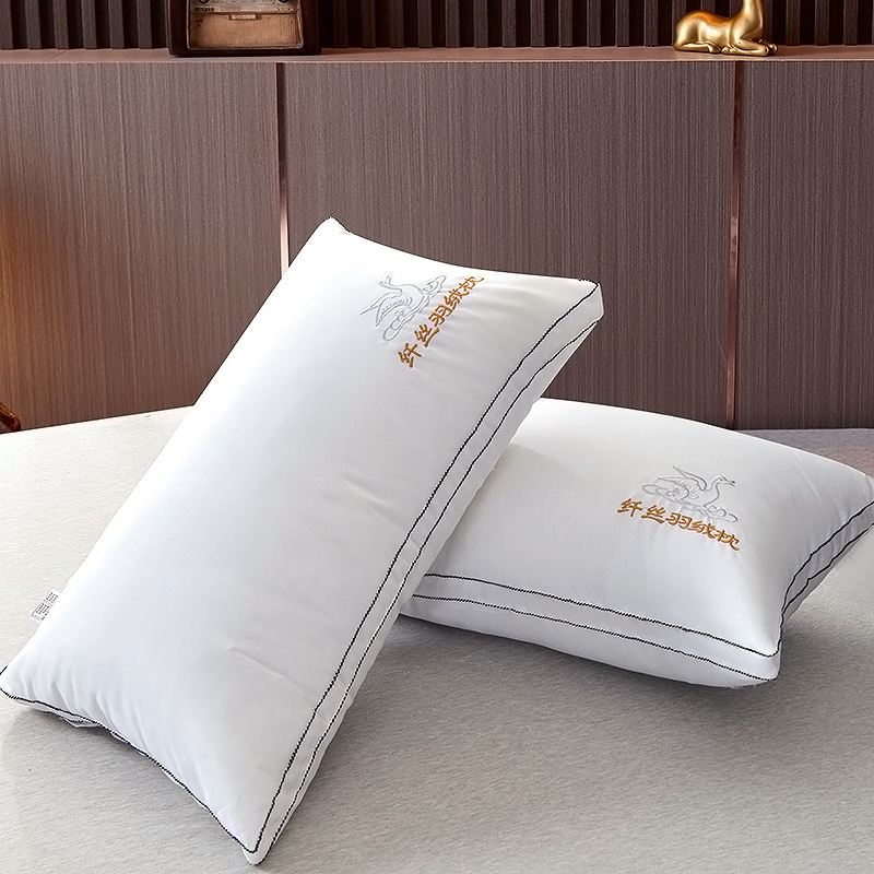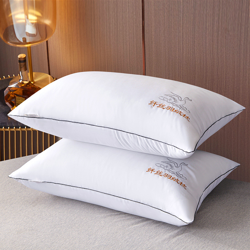 도매 호텔 섬유 깃털 벨벳 자수 베개 코어 오래된 오리 홈 높은 탄성 섬유 베개 단일 학생 목 베개