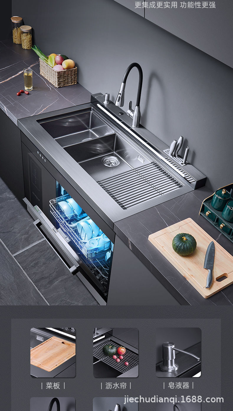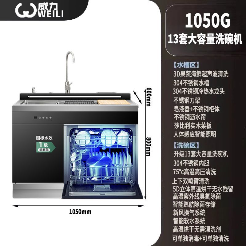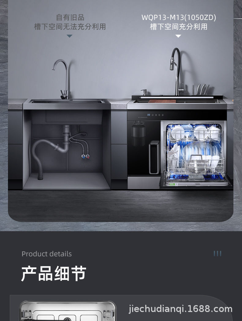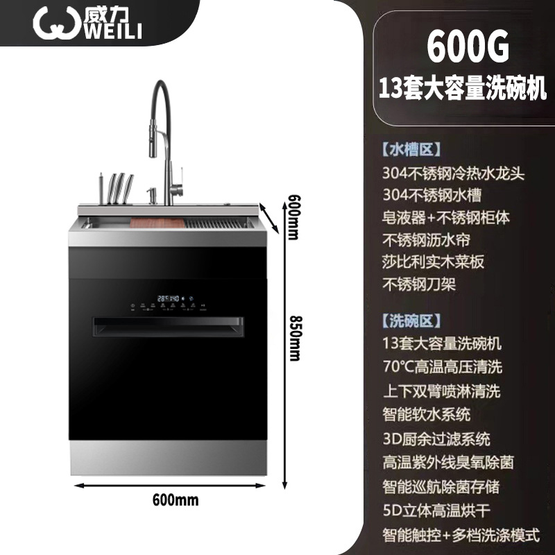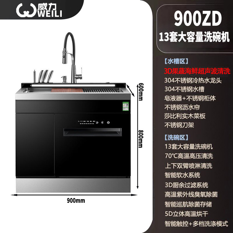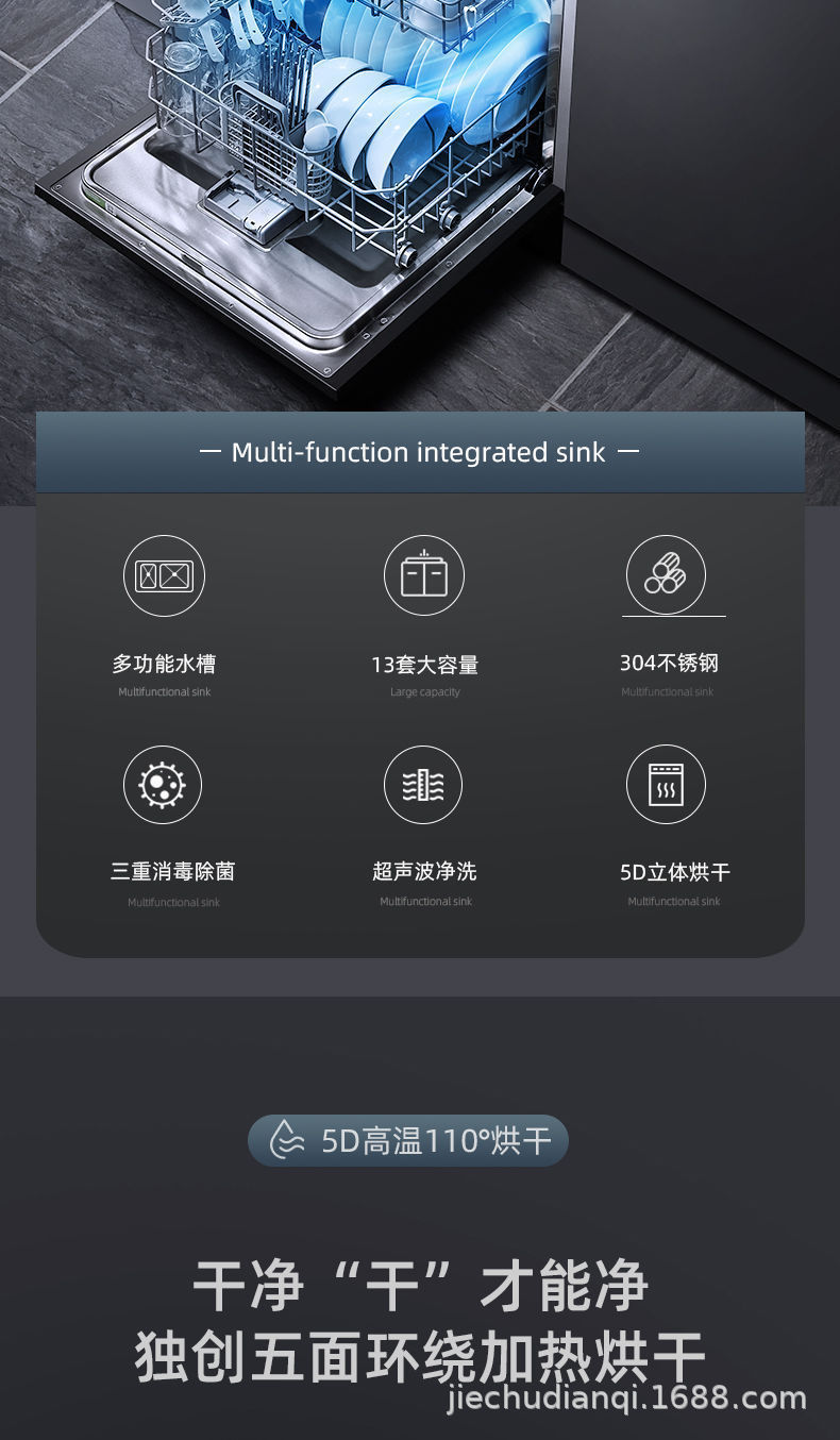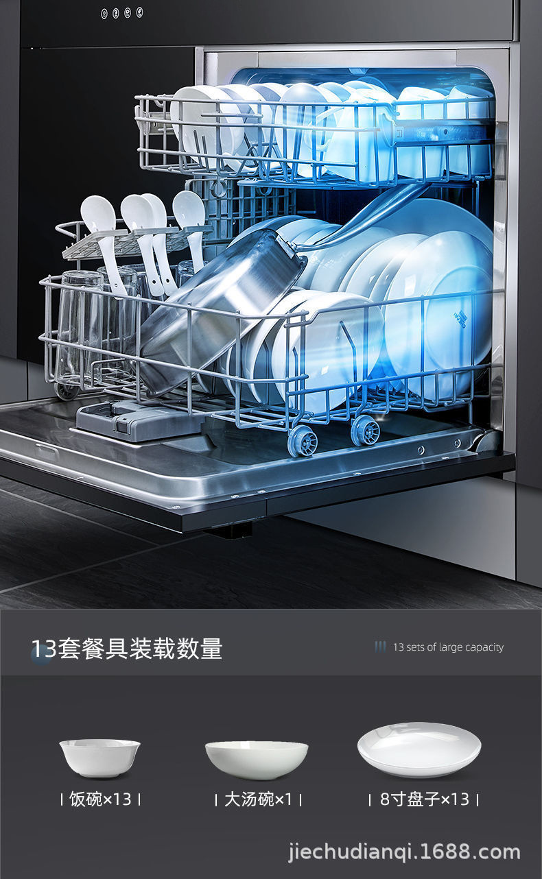 통합 싱크 식기 세척기 대용량 자동 식기 세척기 고온 건조 초음파 세척 식기 세척기 13 세트