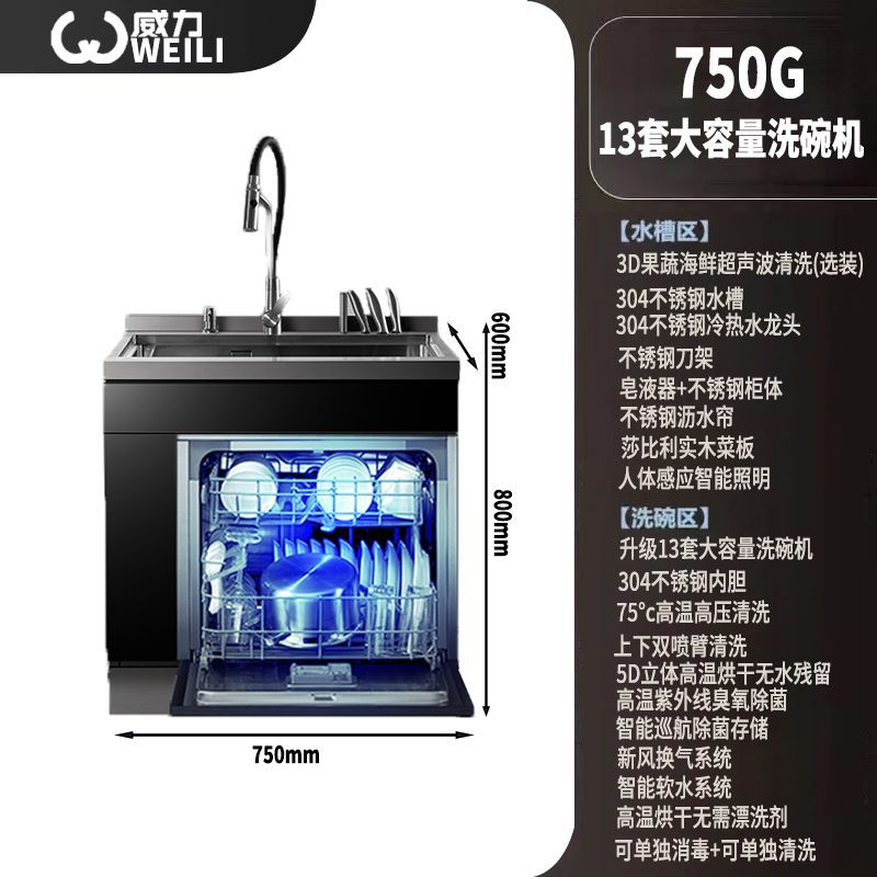 통합 싱크 식기 세척기 대용량 자동 식기 세척기 고온 건조 초음파 세척 식기 세척기 13 세트스토어 가기