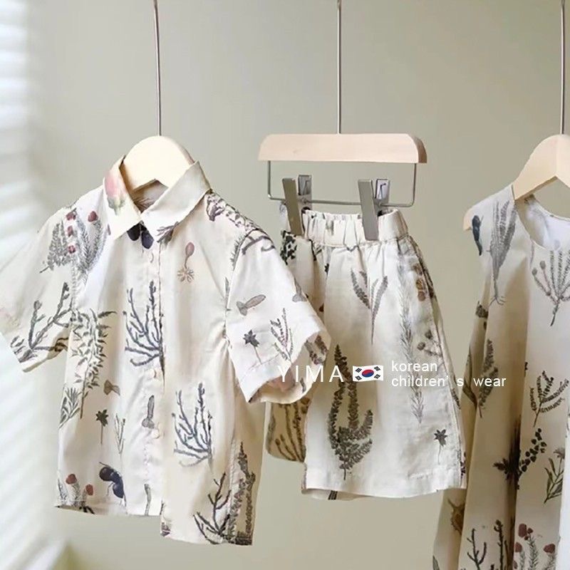 여름 남녀 아동복 아기 외국식 어린이 성격 조수 한국 형제 자매 셔츠 반바지 원피스 세트