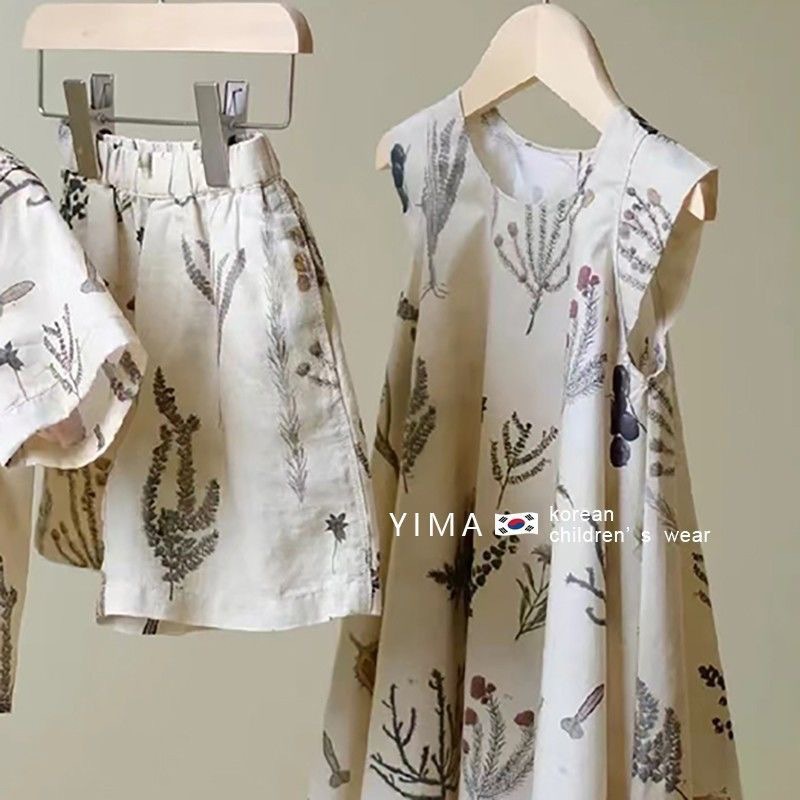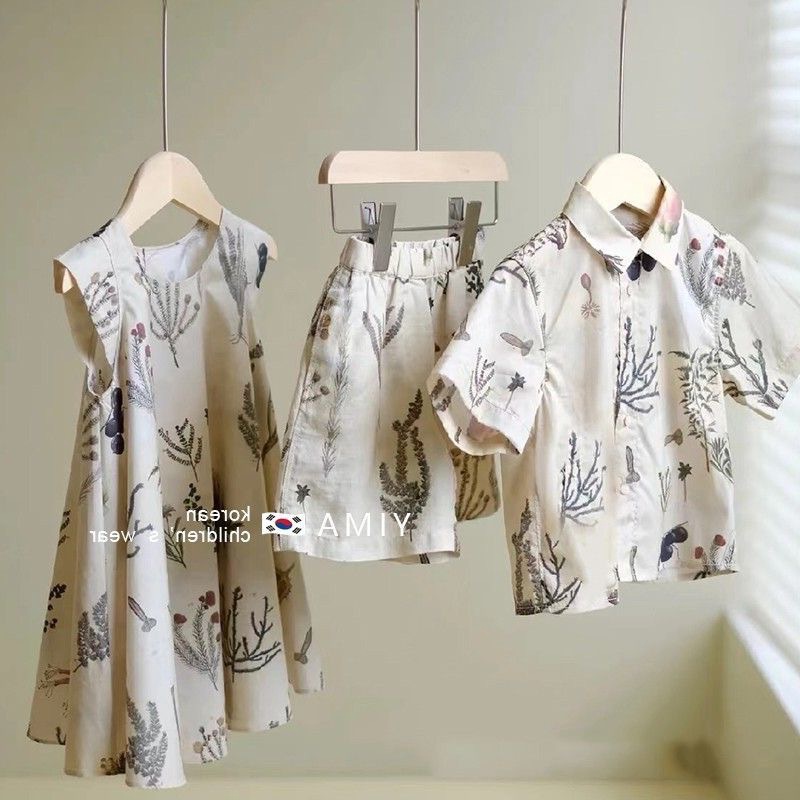 여름 남녀 아동복 아기 외국식 어린이 성격 조수 한국 형제 자매 셔츠 반바지 원피스 세트스토어 가기