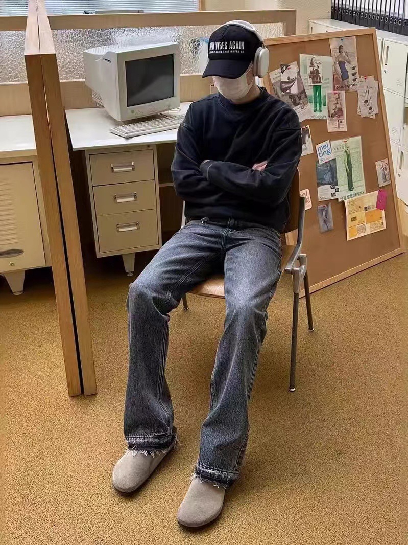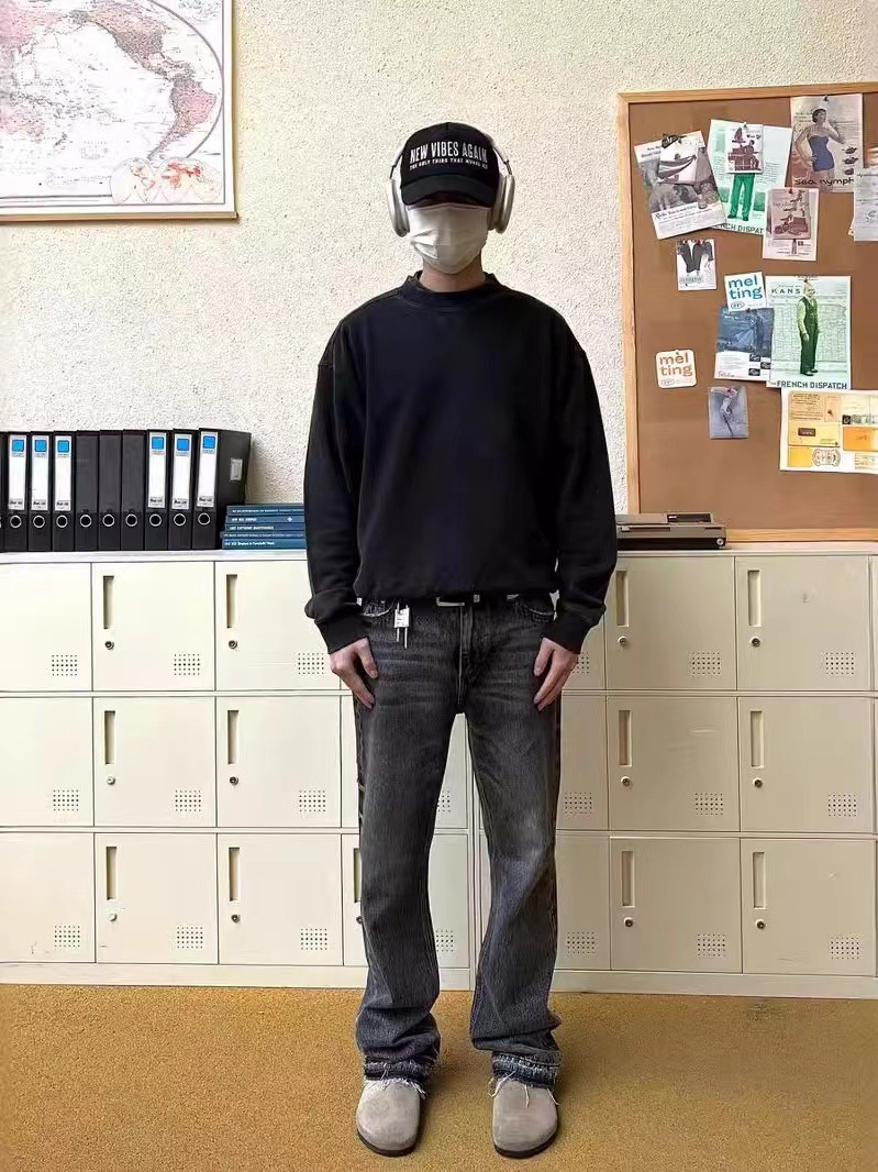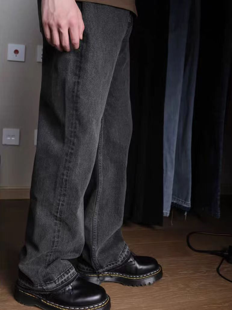 아메리칸 스타일 레트로 클렌핏 스트레이트 507 스타일 엣지 분할 나이프 컷 블랙 세탁 고양이 남성용 청바지스토어 가기