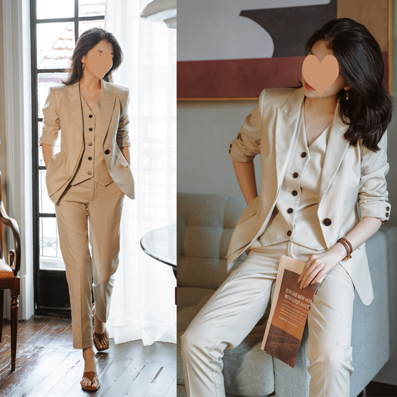 2021 새로운 전문 복장 높은 감각 세트 세트 여성의 영국 바람 그물 붉은 튀김 거리 세트 조끼 3 피스 봄스토어 가기