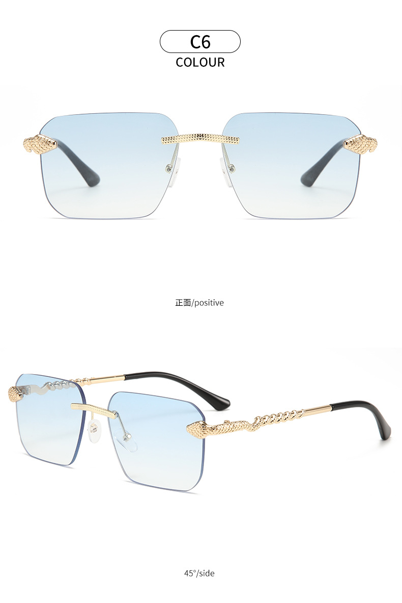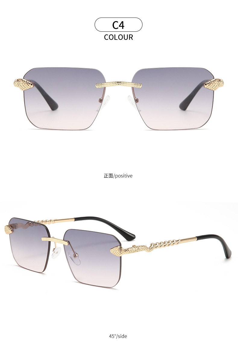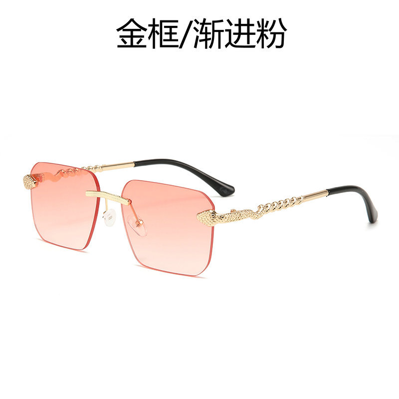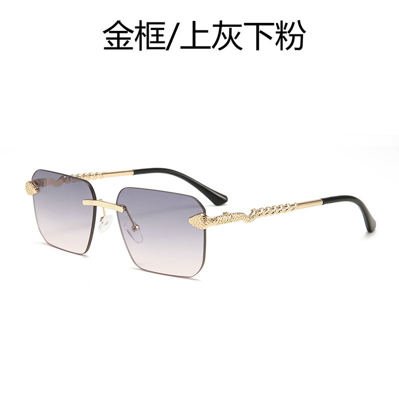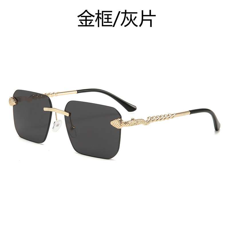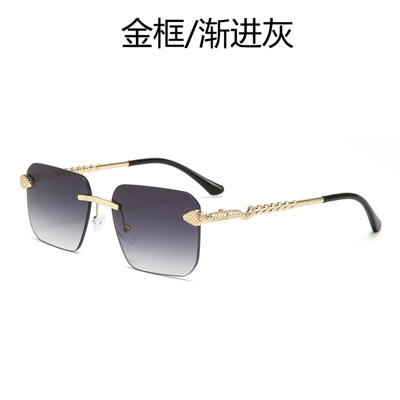 국경 간 새로운 남성 상자 선글라스 패션 뱀 액세서리 장식 프레임리스 선글라스 여성 올 매치 선글라스 남성