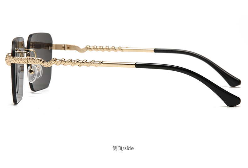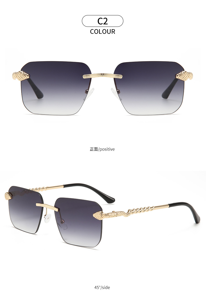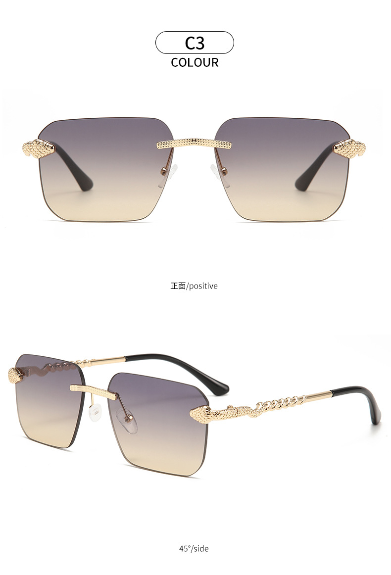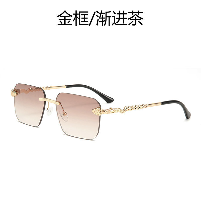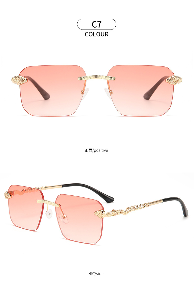 국경 간 새로운 남성 상자 선글라스 패션 뱀 액세서리 장식 프레임리스 선글라스 여성 올 매치 선글라스 남성