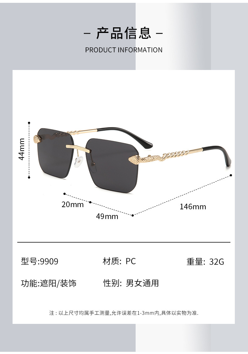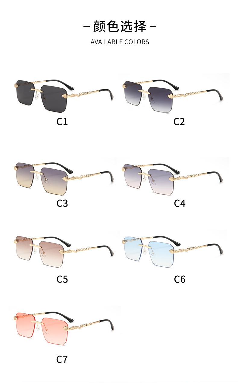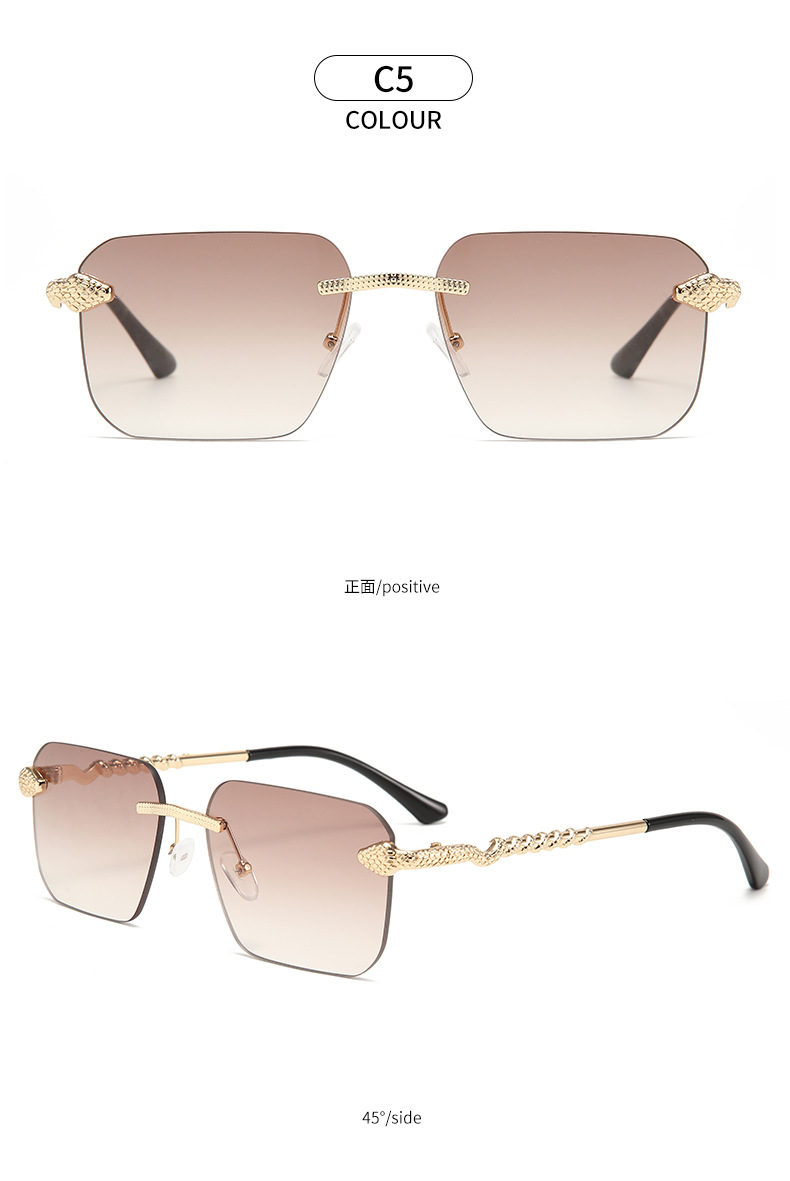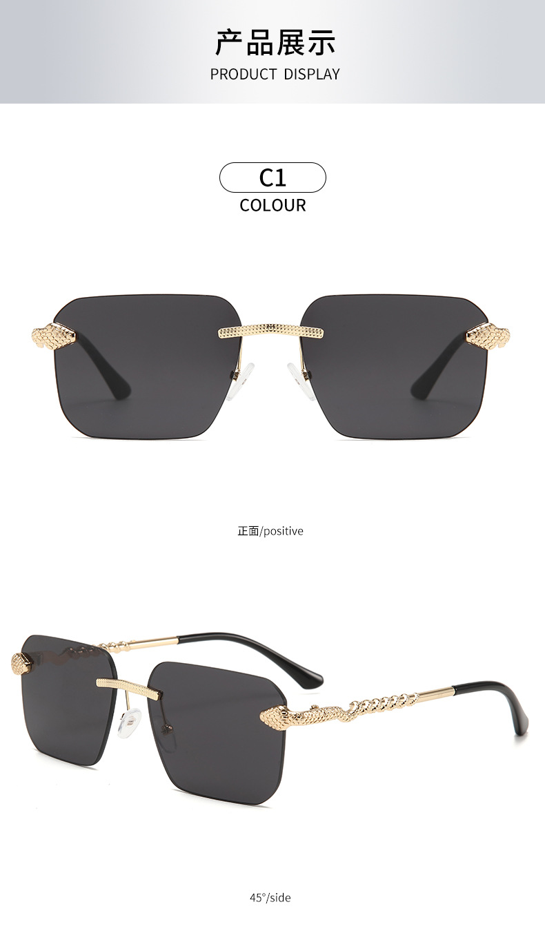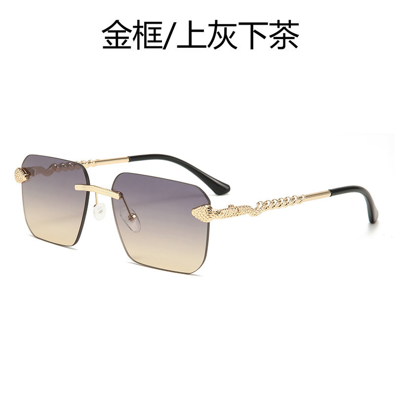 국경 간 새로운 남성 상자 선글라스 패션 뱀 액세서리 장식 프레임리스 선글라스 여성 올 매치 선글라스 남성