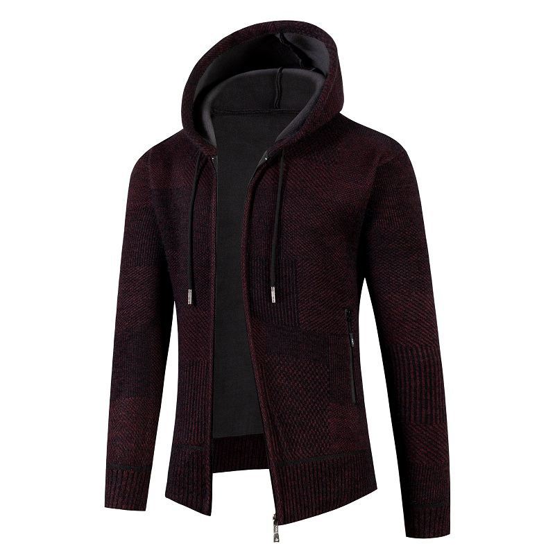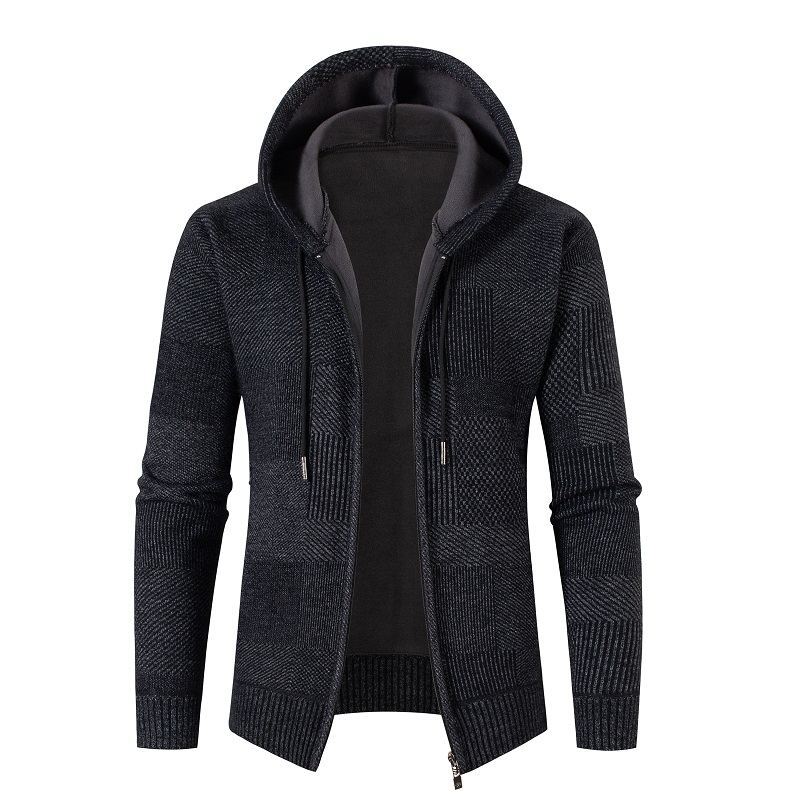 대외 무역 국경 간 가을 및 겨울 남성 니트웨어 캐주얼 모조 밍크 카디건 기모 색상 차단 후드 남성 스웨터 재킷