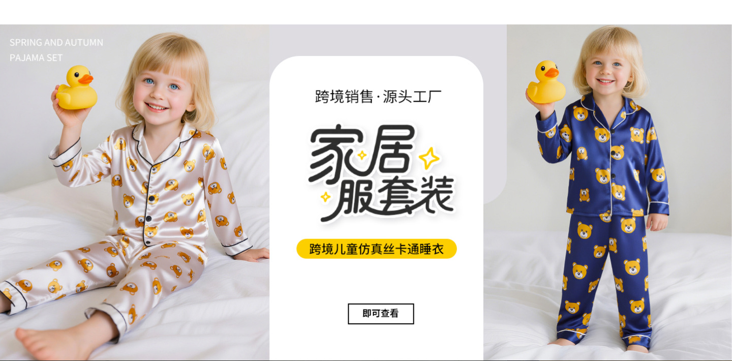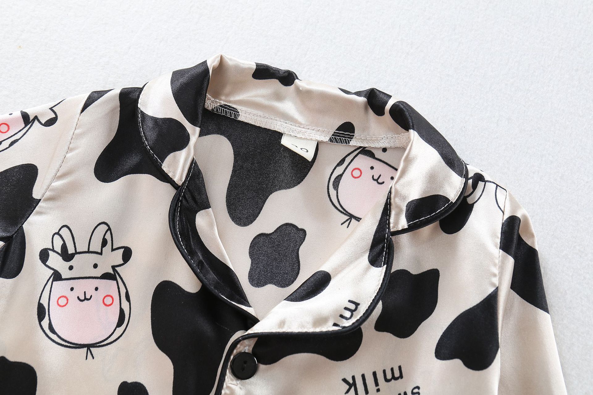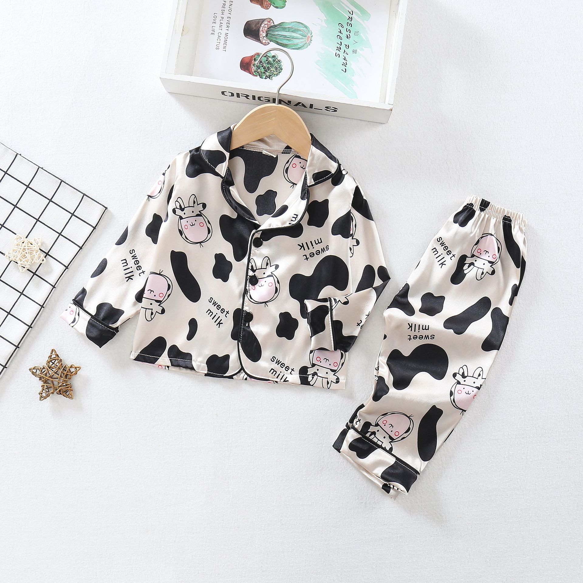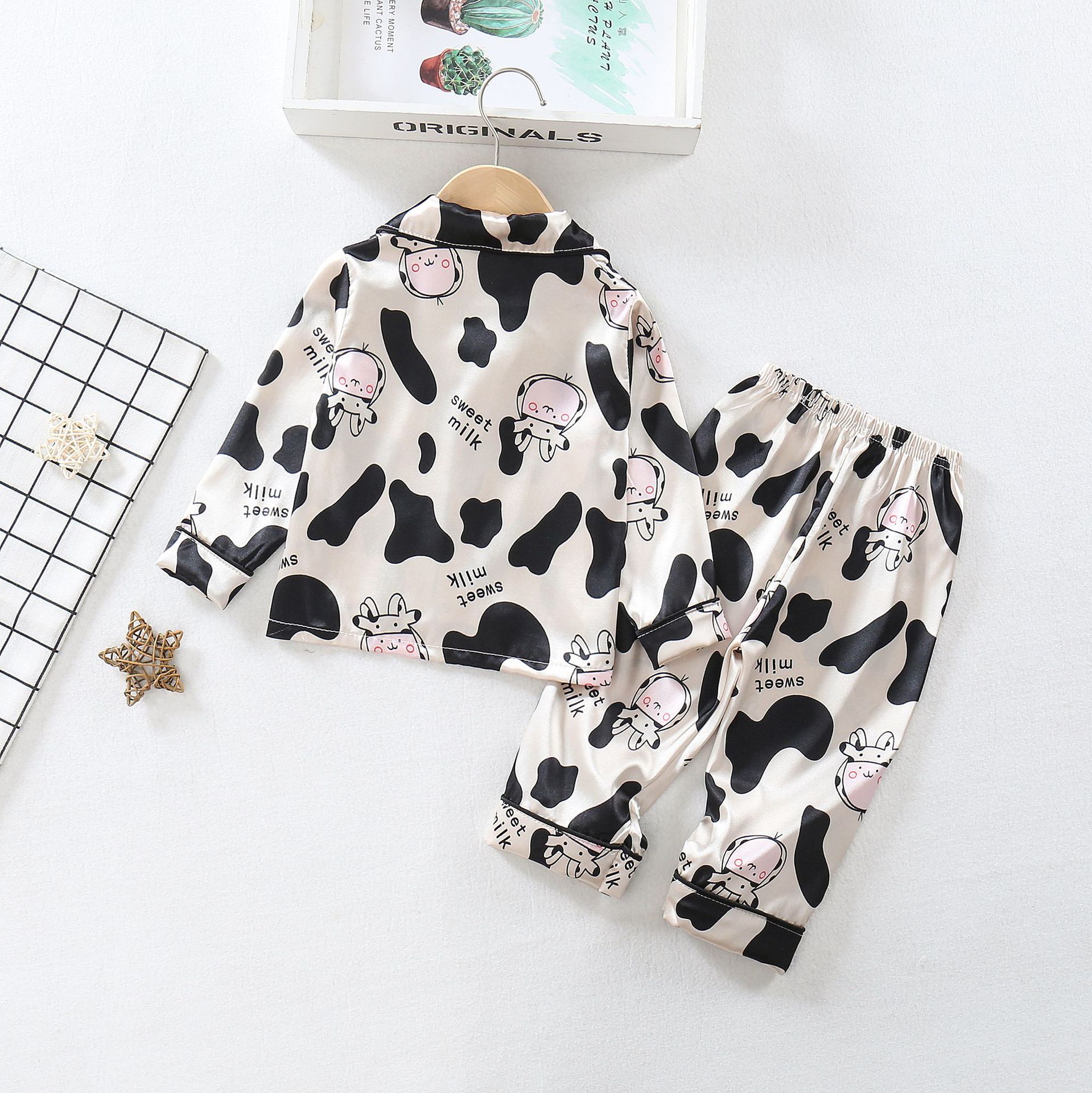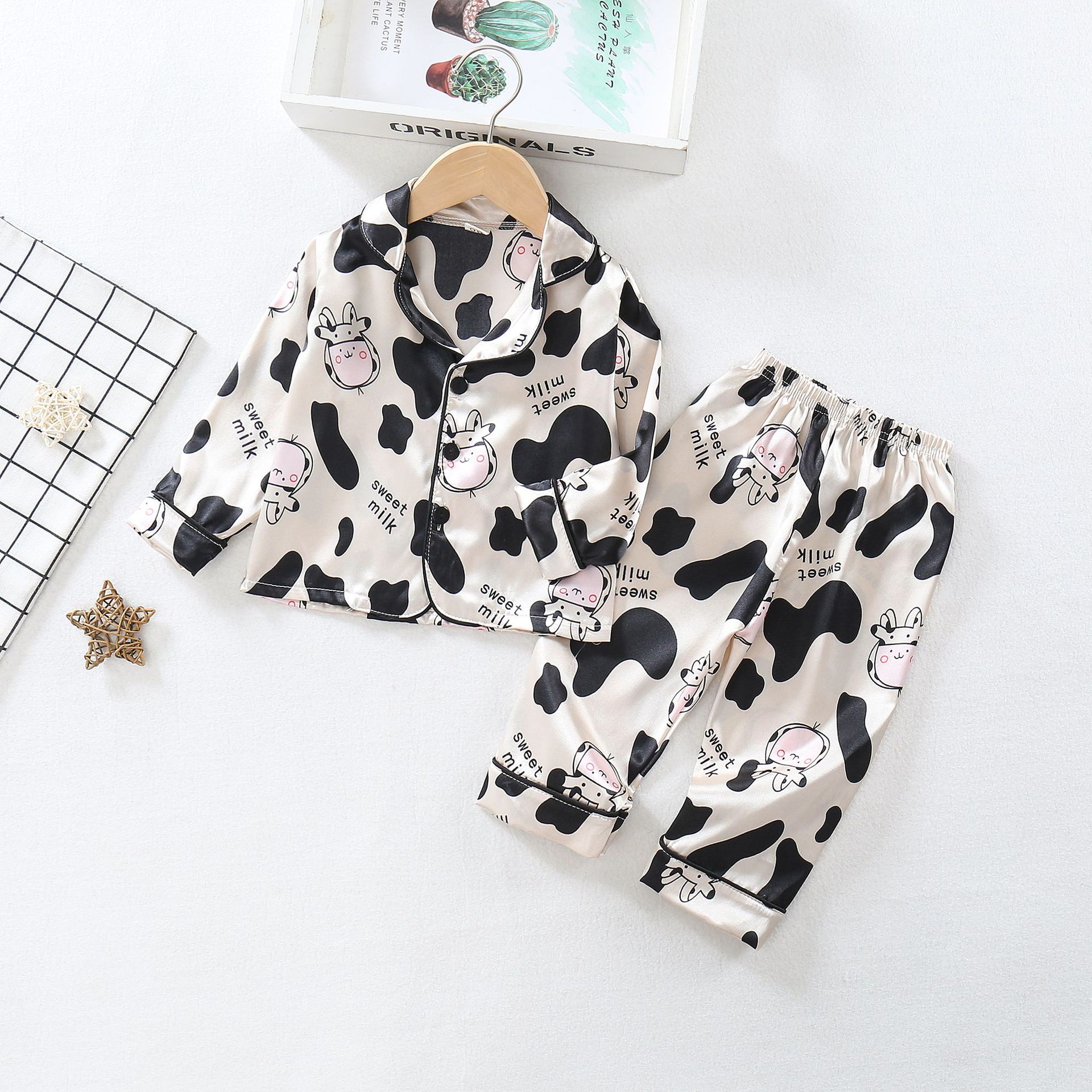 소녀 1-5 세 실크 잠옷 2024 새로운 어린이 귀여운 홈 옷 만화 소 얇은 에어컨 옷스토어 가기