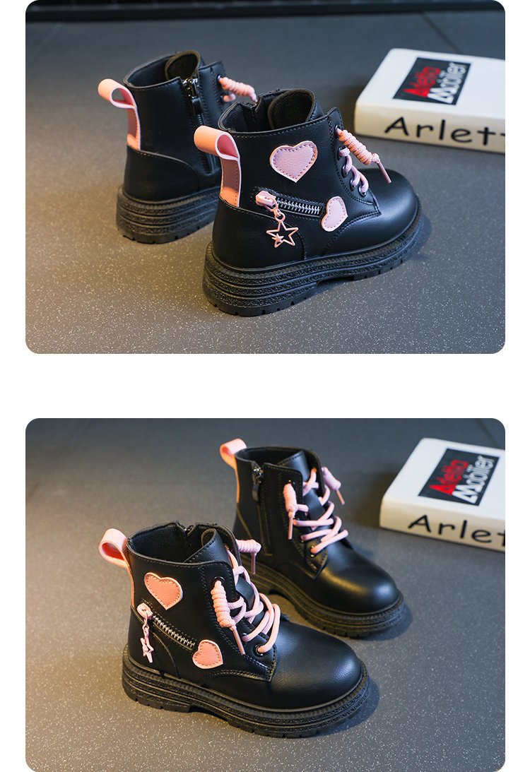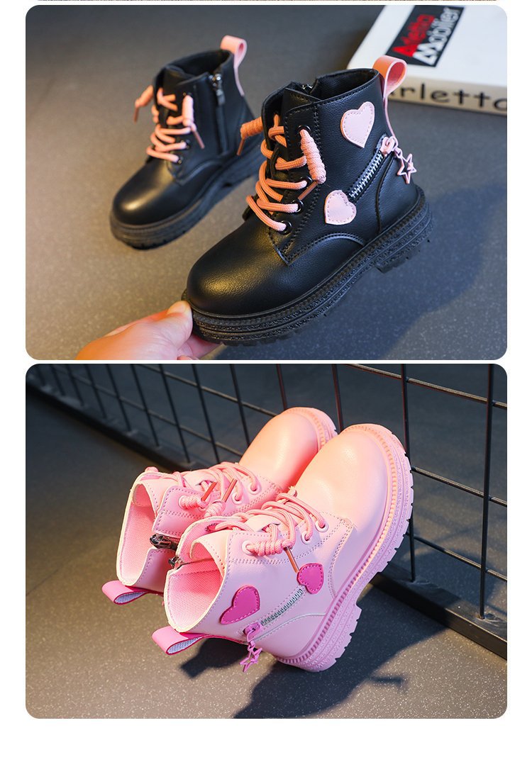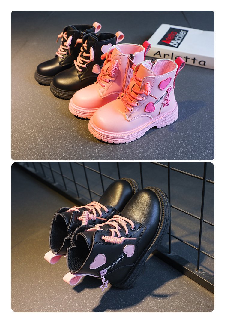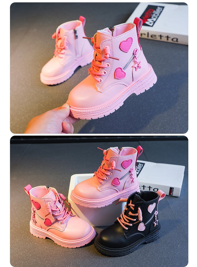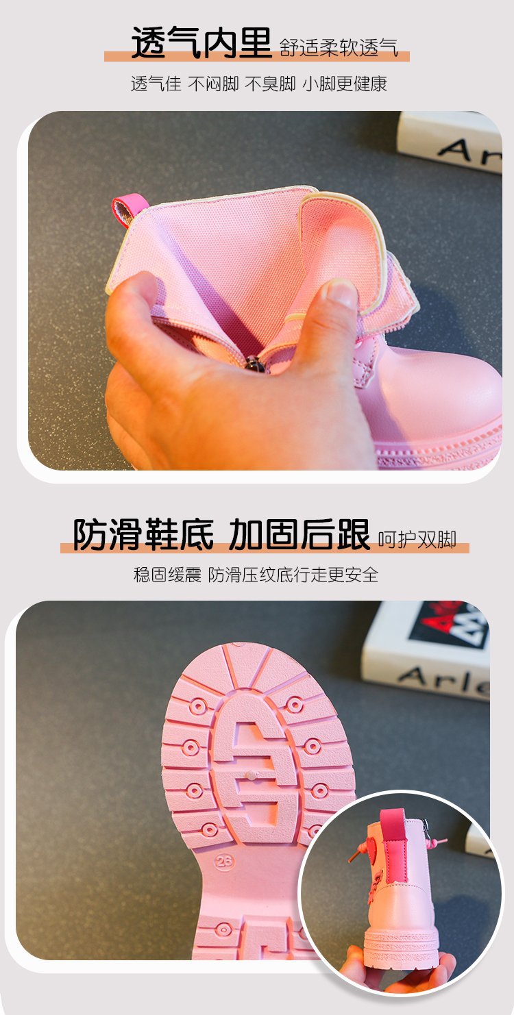 어린이 사이드 지퍼 4 세 로우 튜브 울트라 파이버 가죽 플랫 부츠 겨울 고무 스티치 마틴 부츠