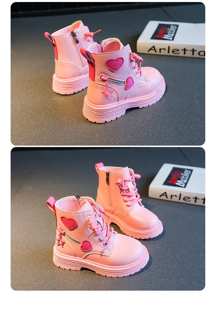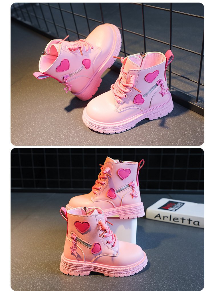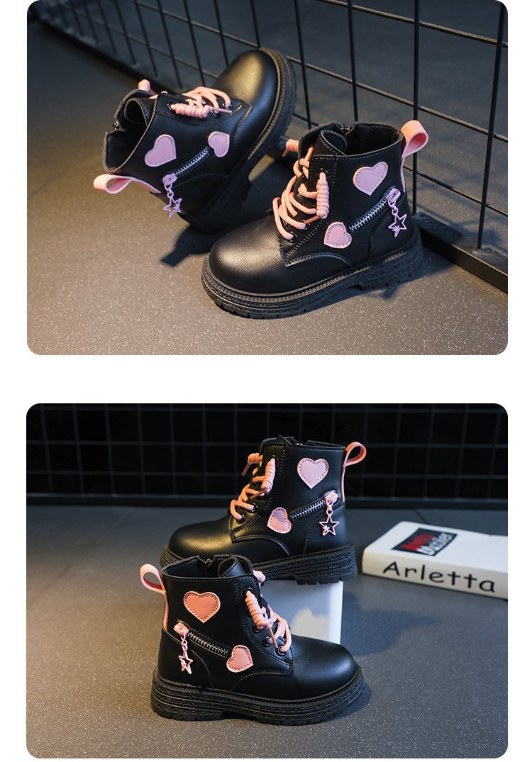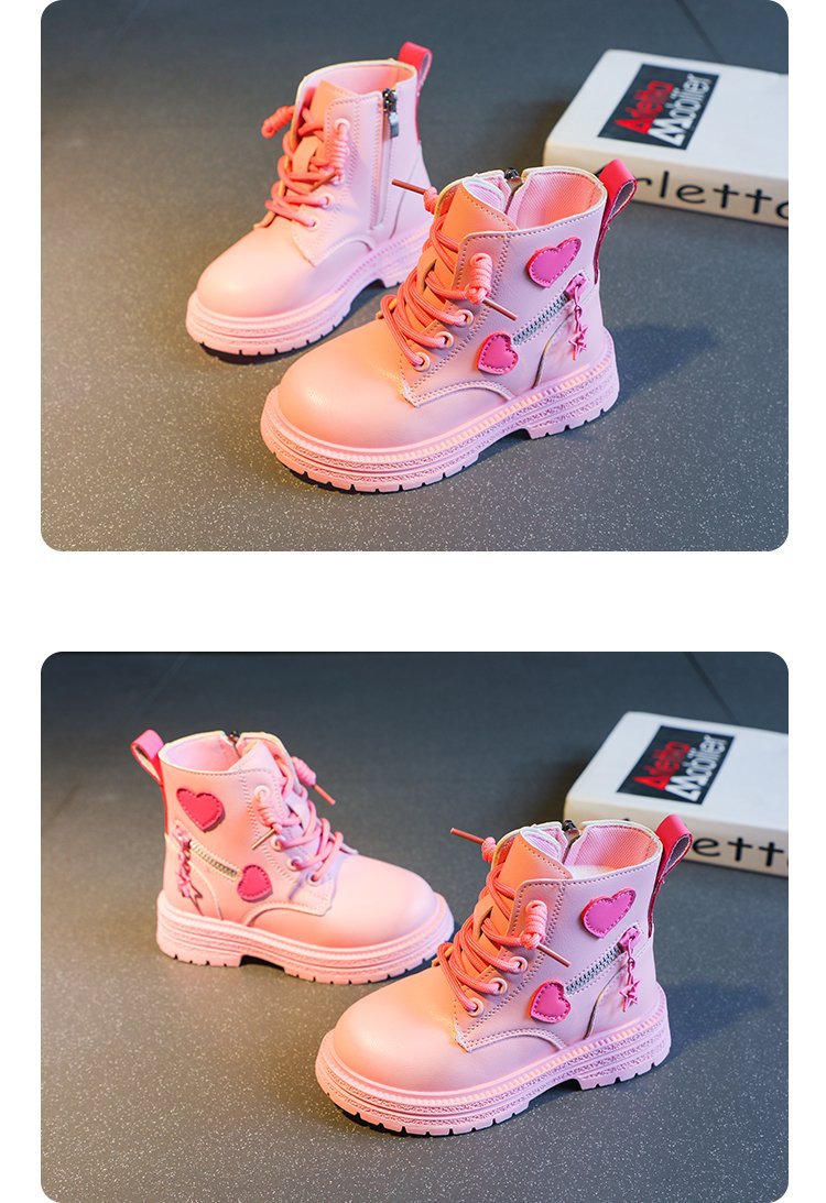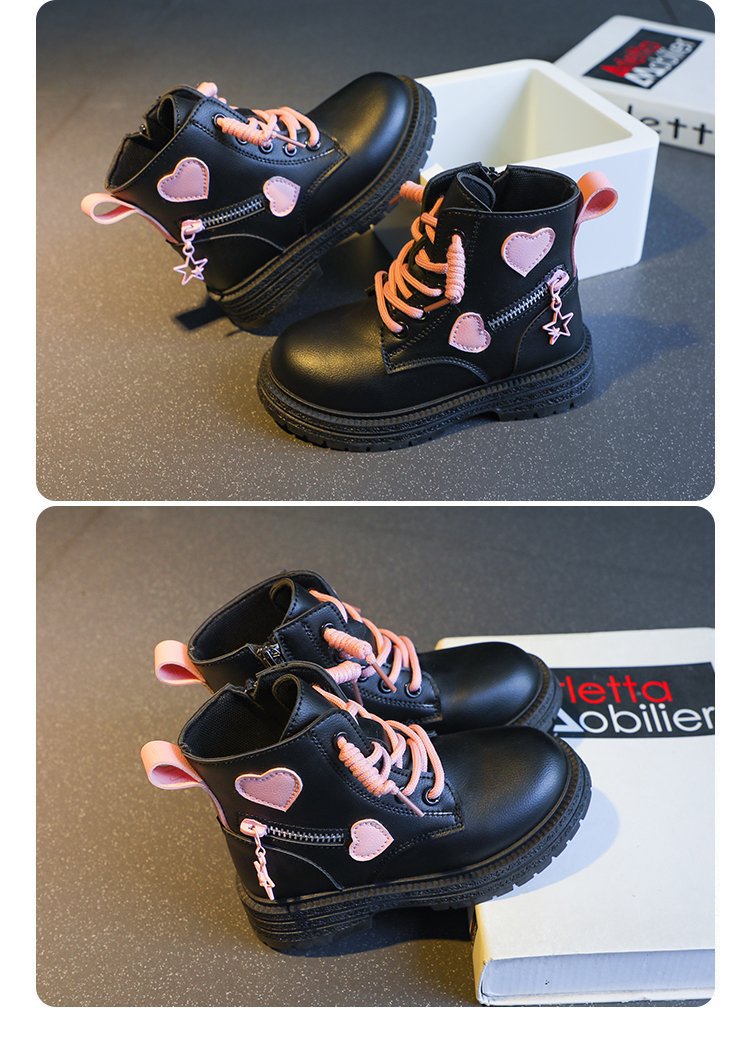 어린이 사이드 지퍼 4 세 로우 튜브 울트라 파이버 가죽 플랫 부츠 겨울 고무 스티치 마틴 부츠