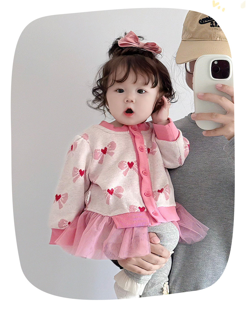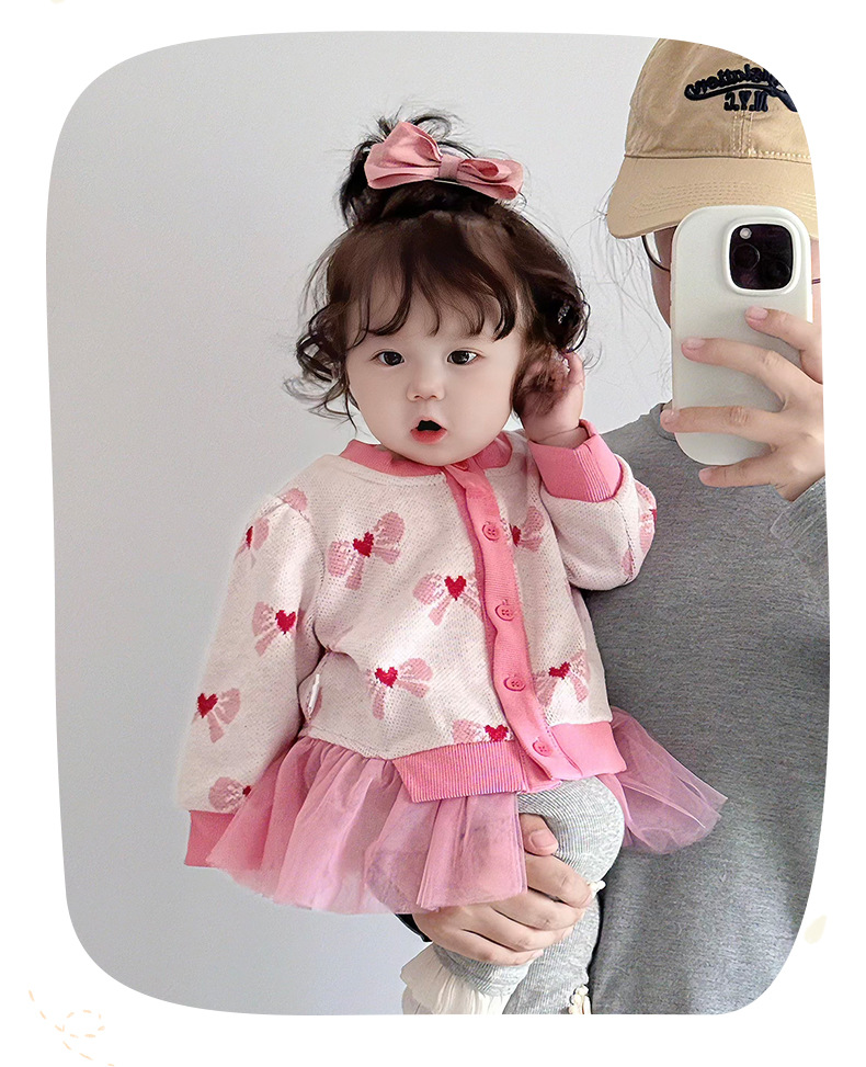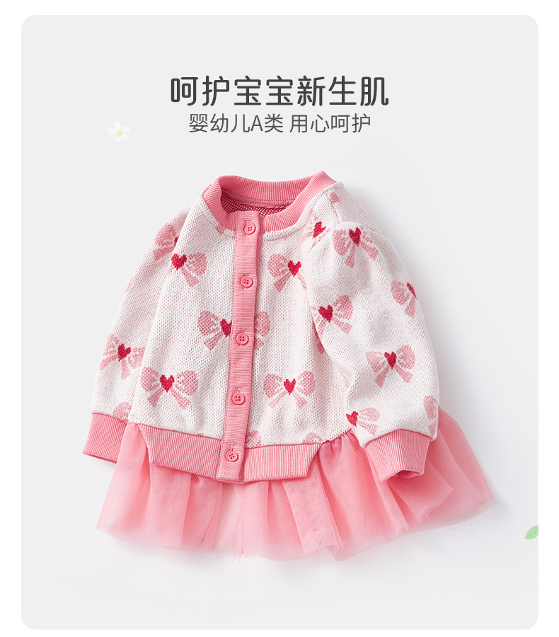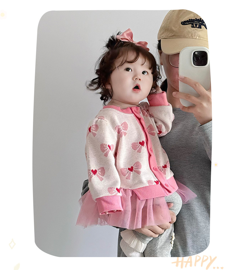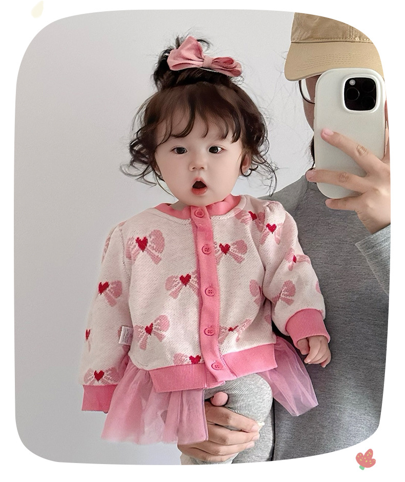 아기 가을 니트 가디건 2025 여아 메쉬 스커트 페이크 투피스 스플라이스 스웨터 가디건 봄 가을 3812