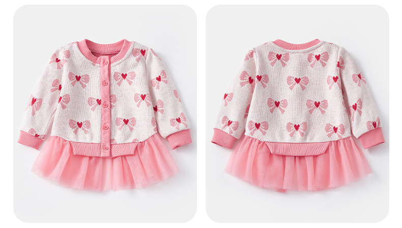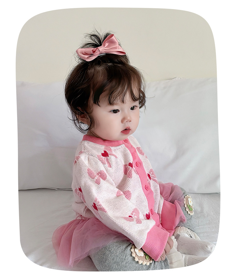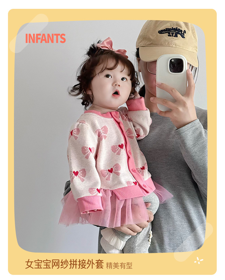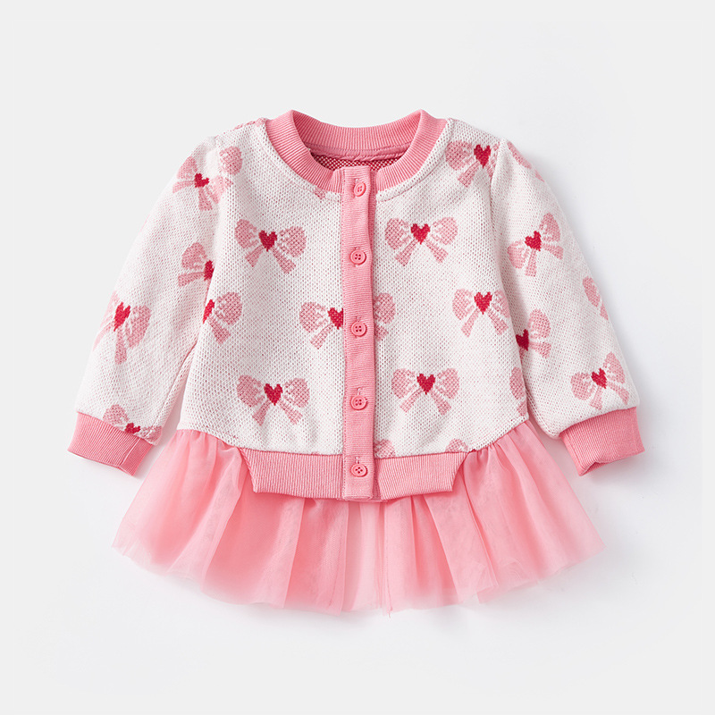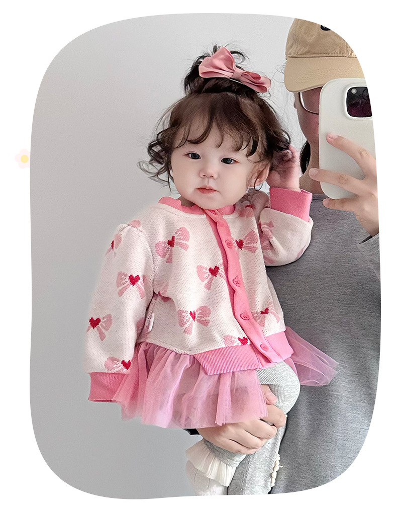 아기 가을 니트 가디건 2025 여아 메쉬 스커트 페이크 투피스 스플라이스 스웨터 가디건 봄 가을 3812