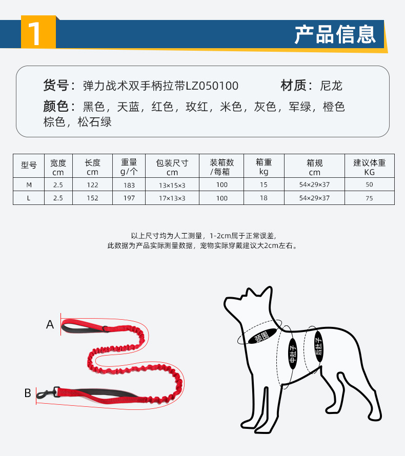 국경 간 중형 및 대형 개 전술 견인 로프 버퍼 개 체인 훈련 폭발 방지 러시 개 걷는 로프 견인 벨트스토어 가기