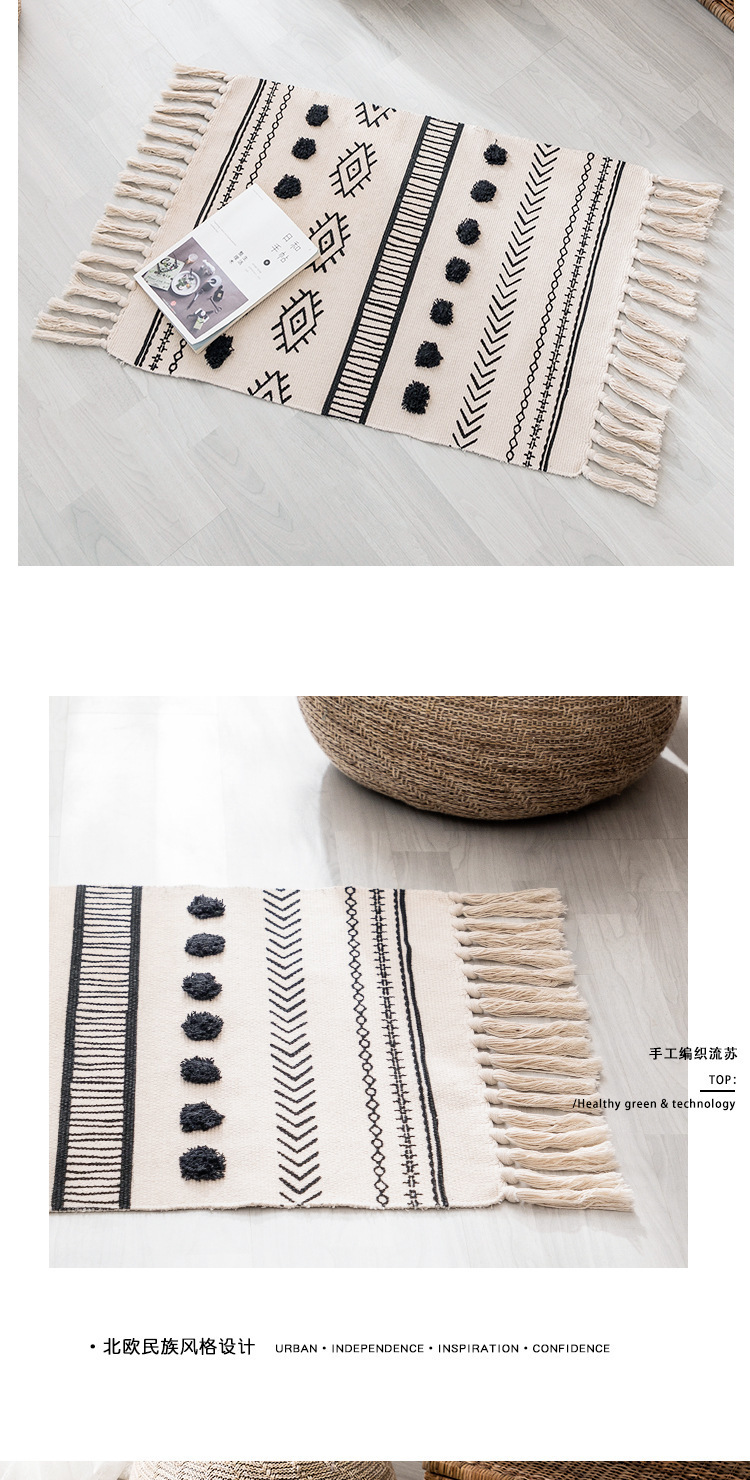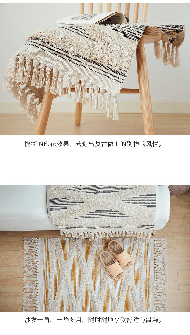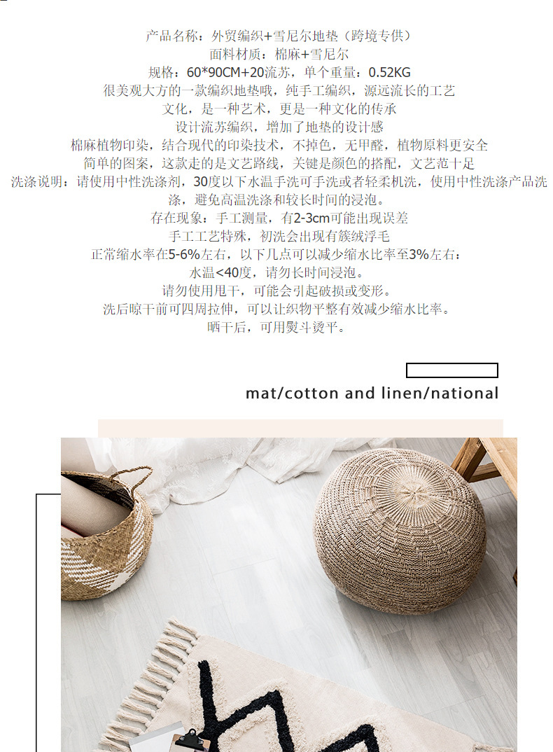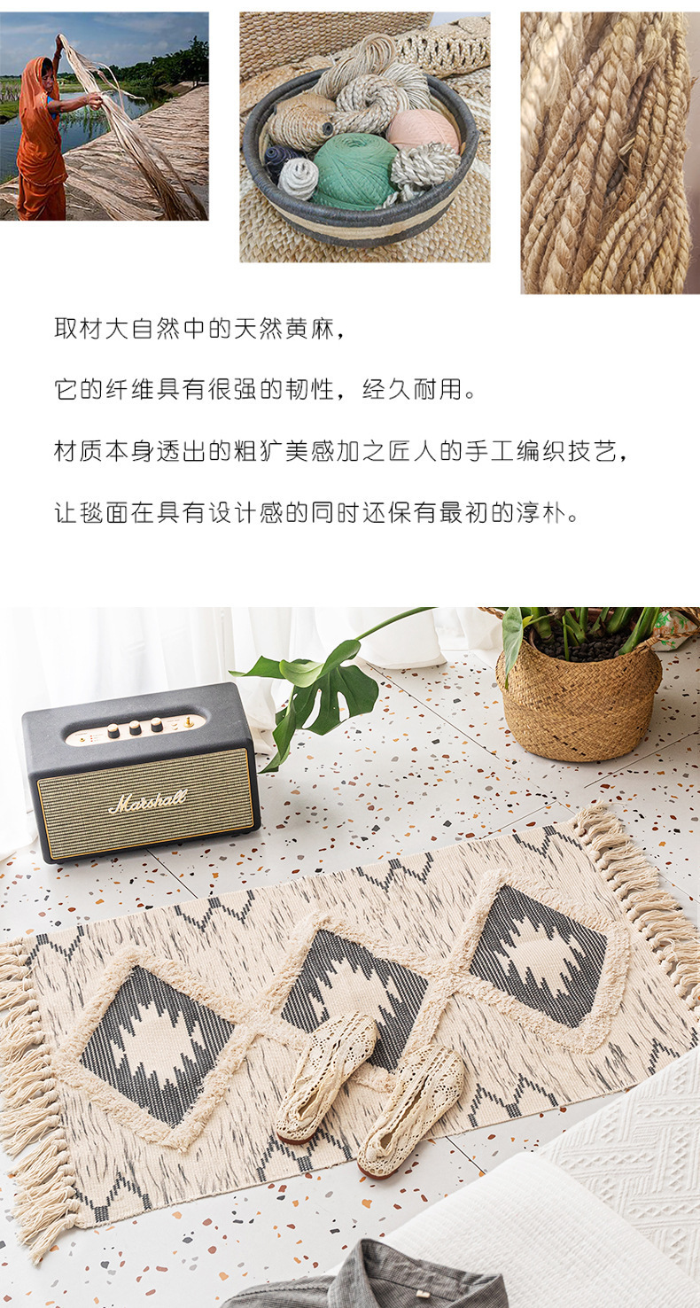 국경 간 민족 바람 대마 매트 복고풍 일반 태피스트리 수제 카펫 연구 침실 소파 쿠션 머리카락 세대스토어 가기