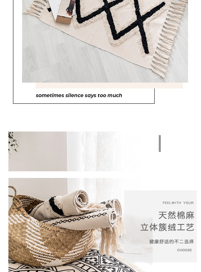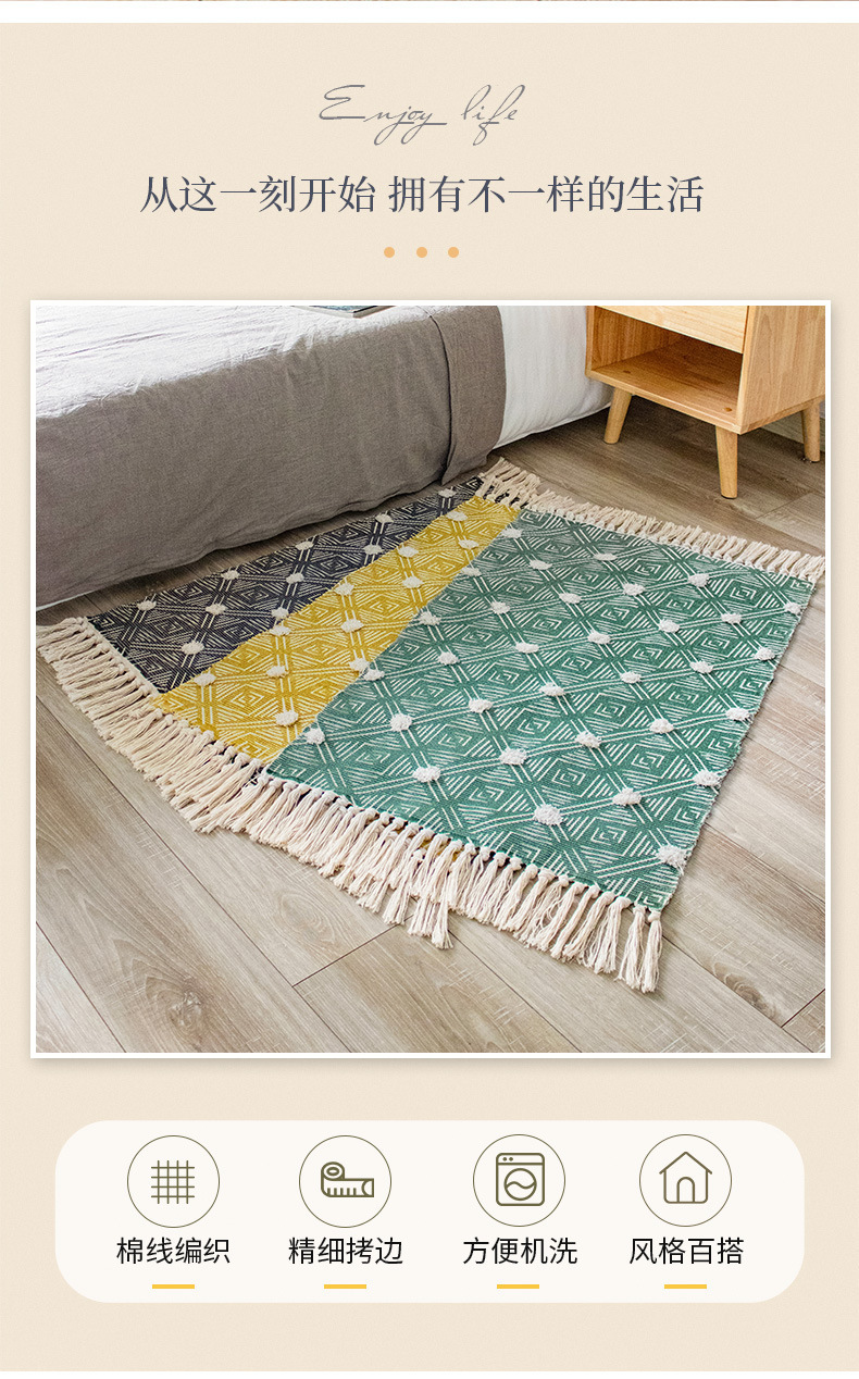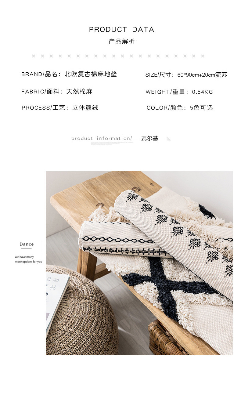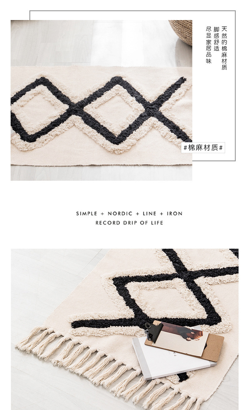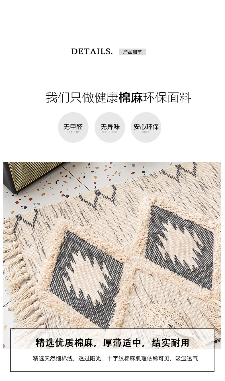 국경 간 민족 바람 대마 매트 복고풍 일반 태피스트리 수제 카펫 연구 침실 소파 쿠션 머리카락 세대스토어 가기