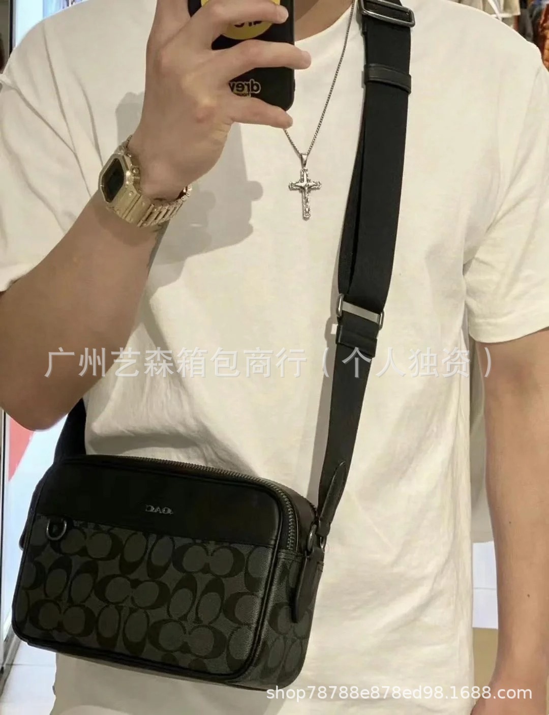 코코 남자의 그레이엄 사진 가방 유행 간단한 여행 작은 광장 가방 더블 지퍼 캐주얼 크로스 바디 남성 가방스토어 가기