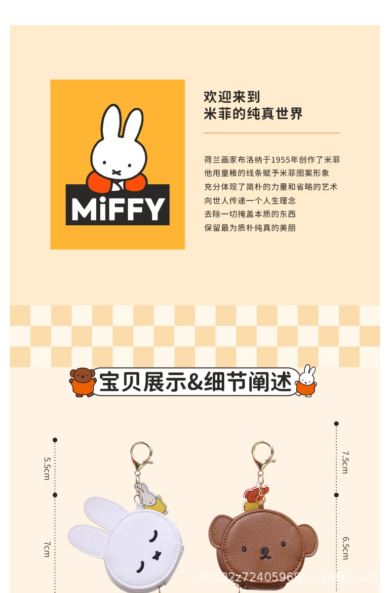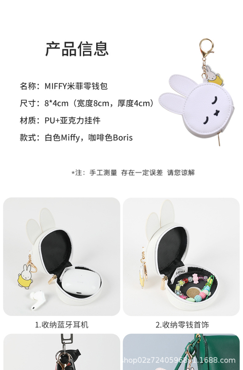 [공식 정품] 미피 만화 버클 헤드폰 가방은 더블 레이어 PU 소재 동전 지갑을 도매로 걸 수 있습니다스토어 가기
