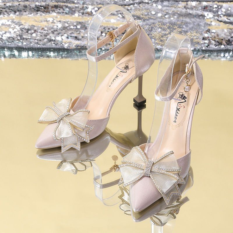 하이힐 스틸레토 힐 버클 밴드 할로우 원피스 신발 봄과 여름 2024 새로운 도착 활 포인티드 페어리 스타일 싱글 레이어 신발스토어 가기
