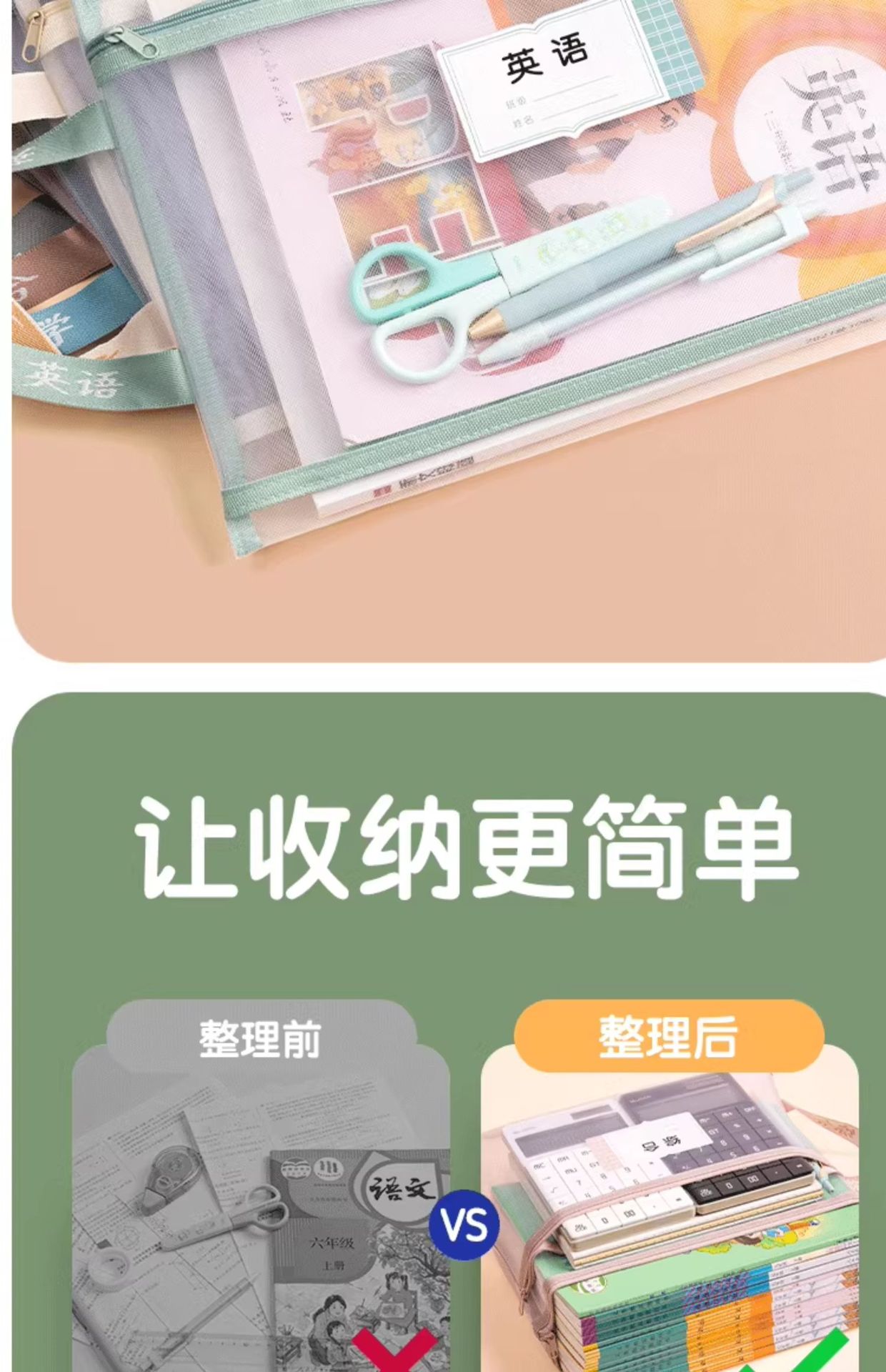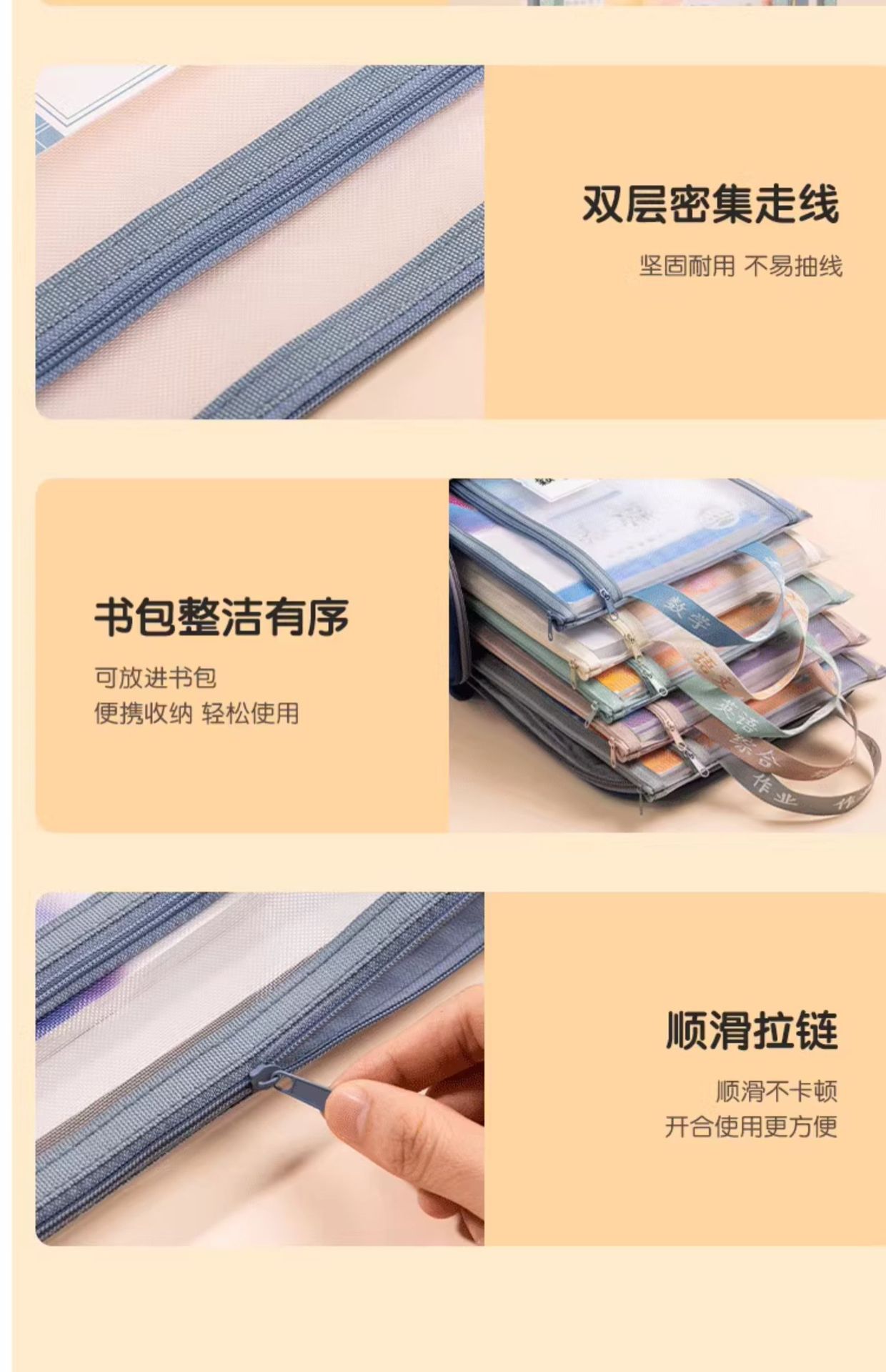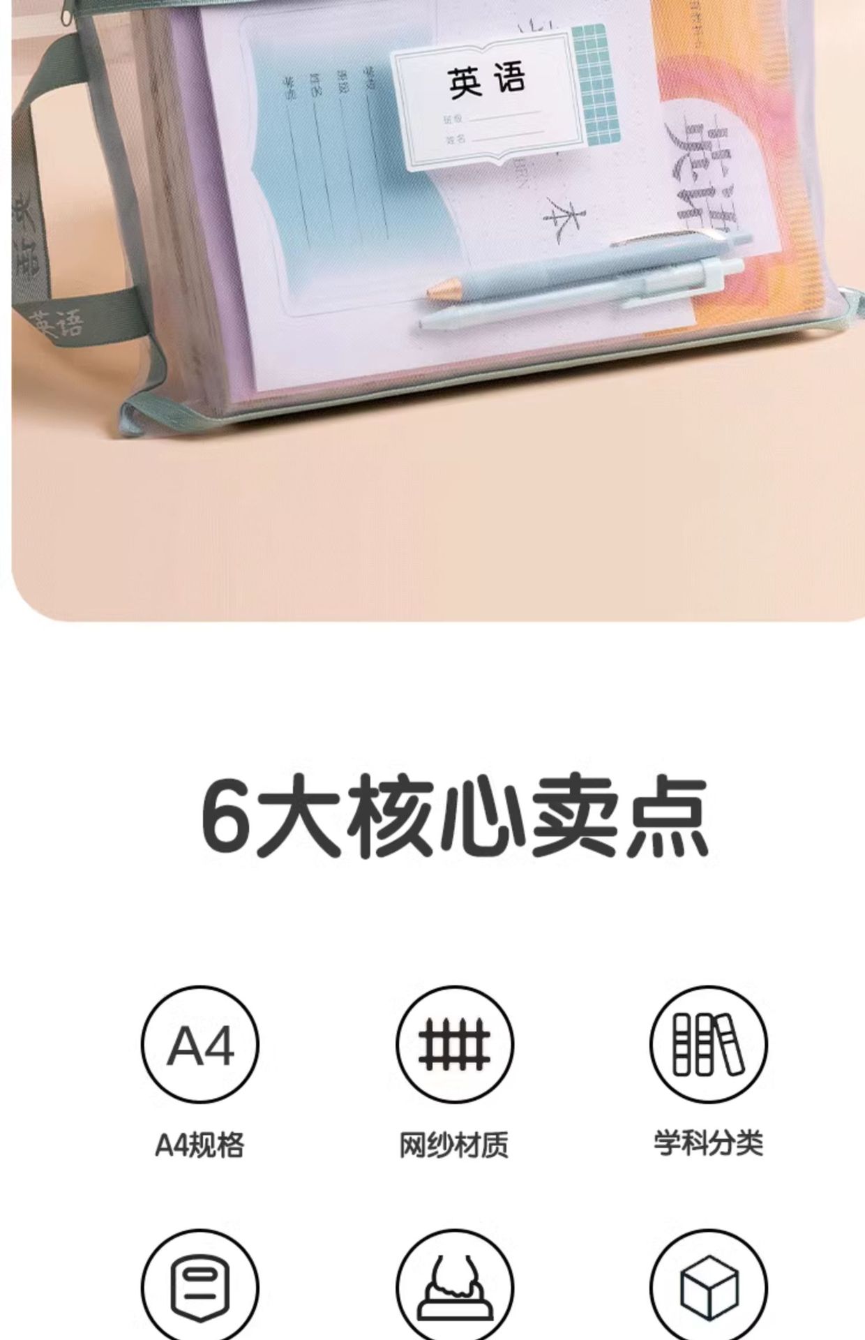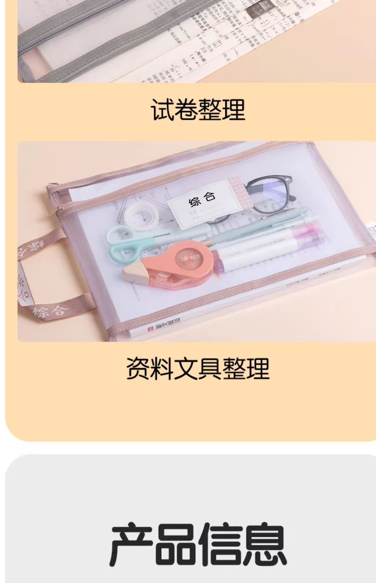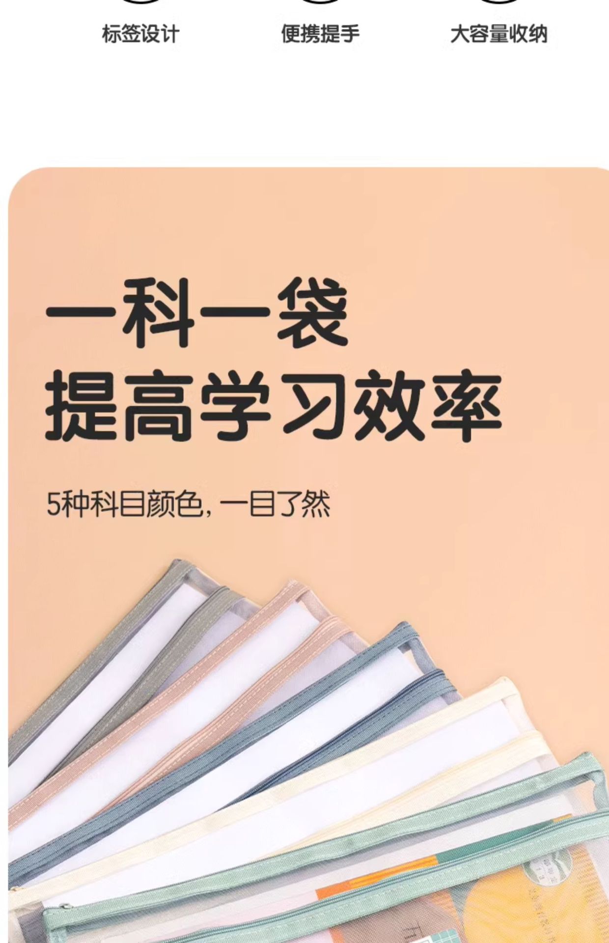 델리 주제 분류 가방 문서 가방 제목 지퍼 더블 레이어 대용량 초등 학교 재료 테스트 종이 저장 가방