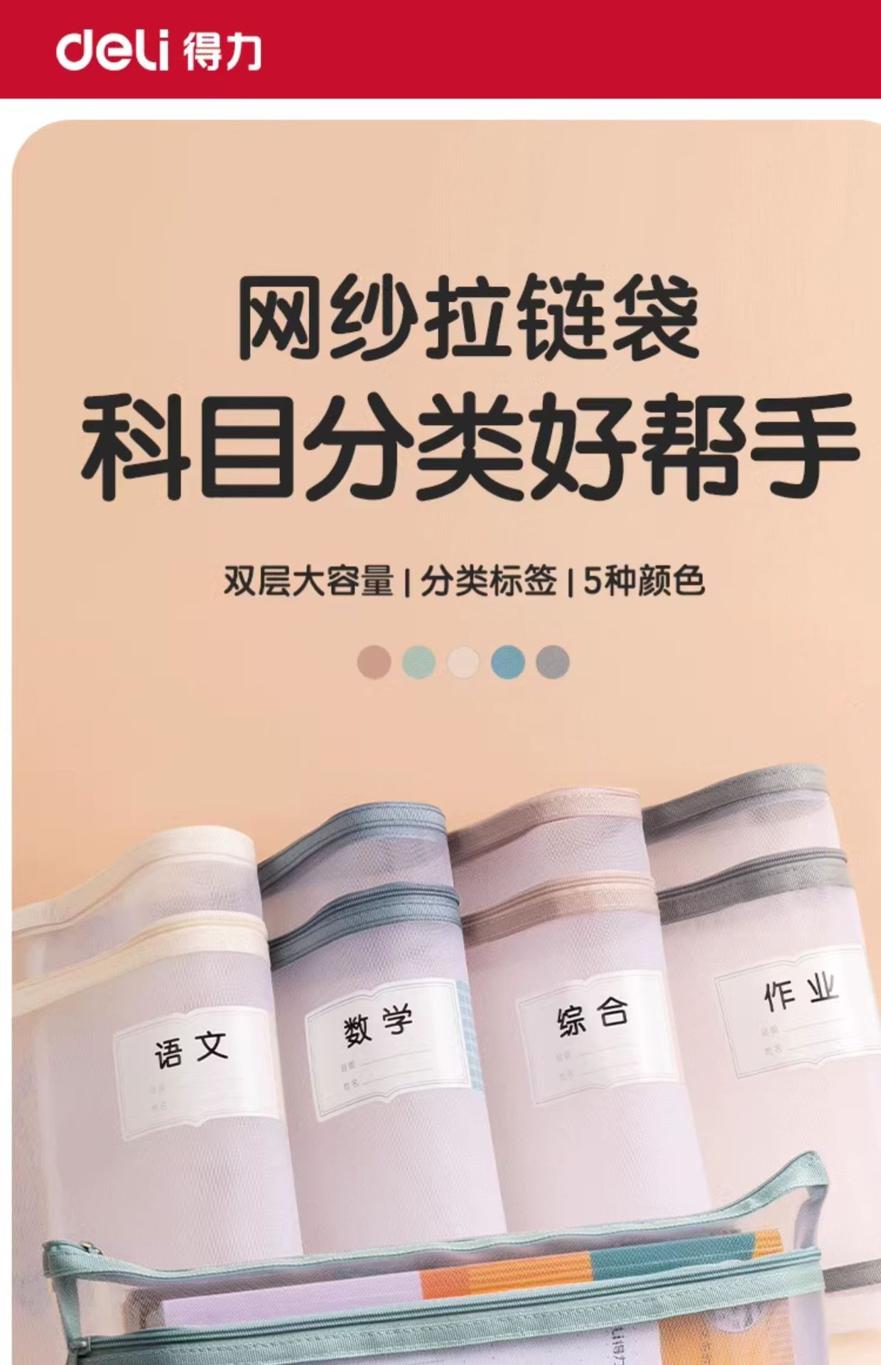 델리 주제 분류 가방 문서 가방 제목 지퍼 더블 레이어 대용량 초등 학교 재료 테스트 종이 저장 가방스토어 가기