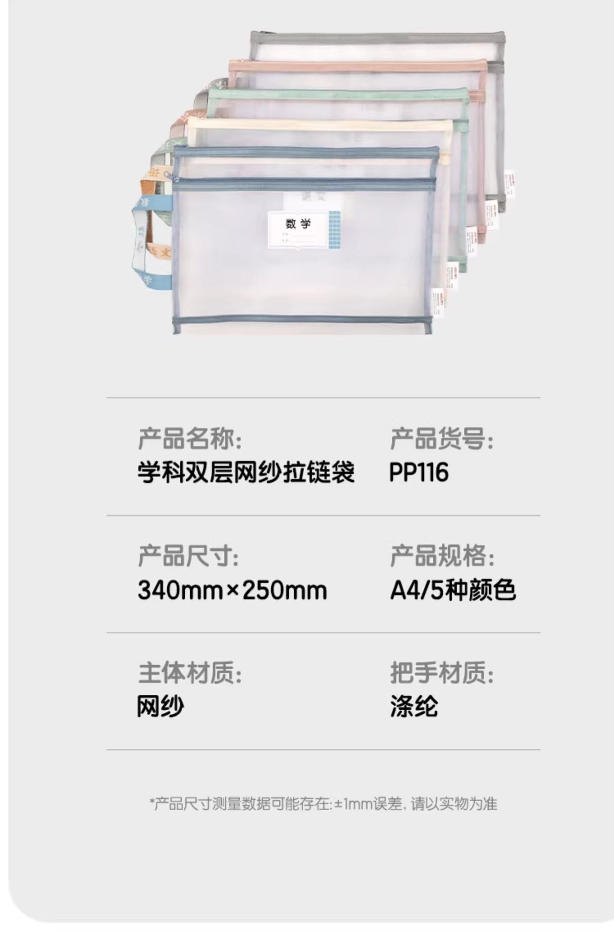 • 딜리 핸들리스 메쉬 주제 가방 단층 1개(중국어)