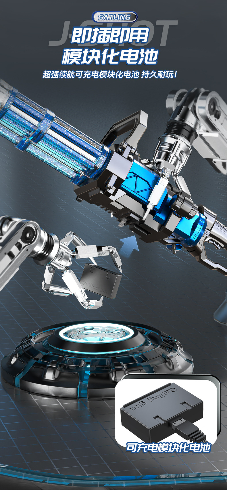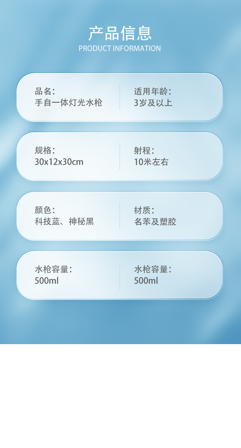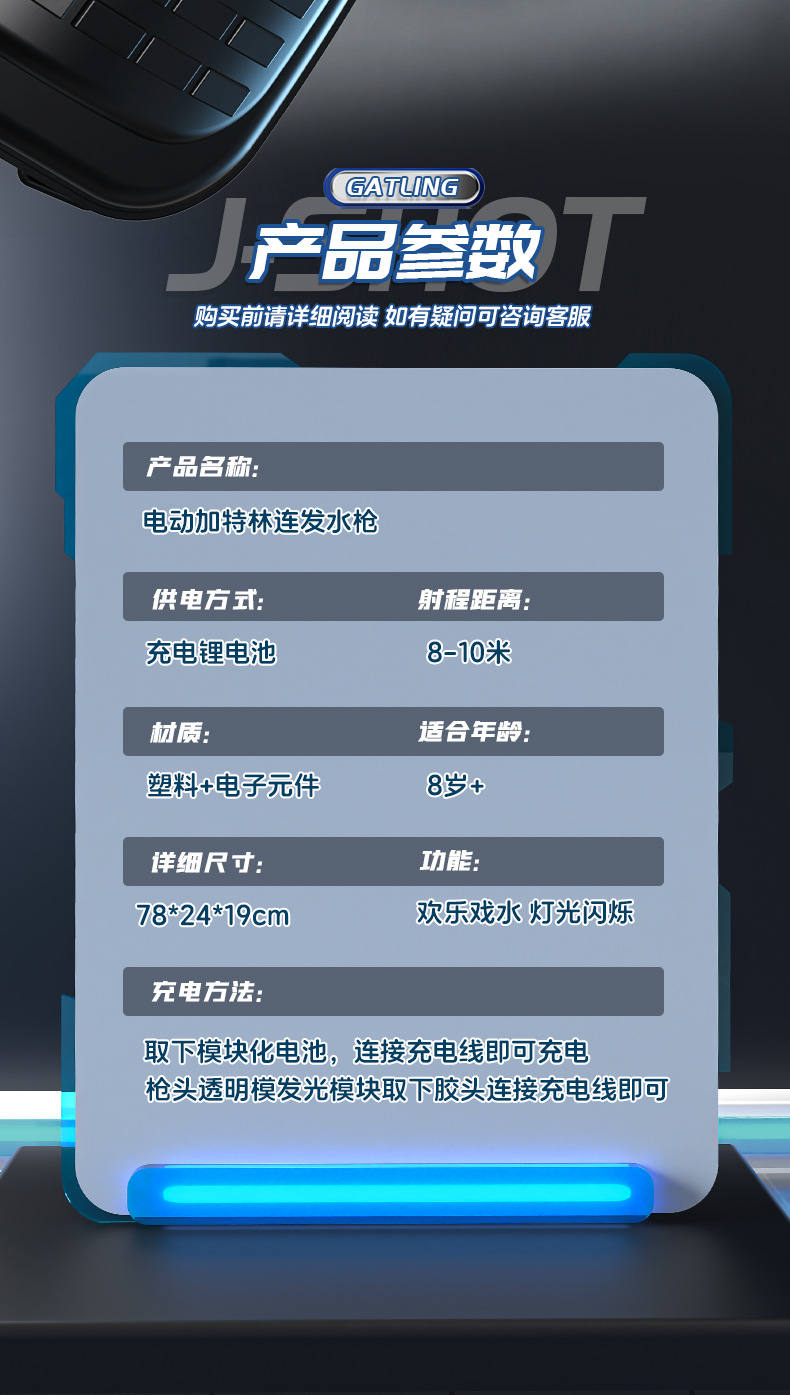 • 005A 개틀링 물 총 투명한 파란색