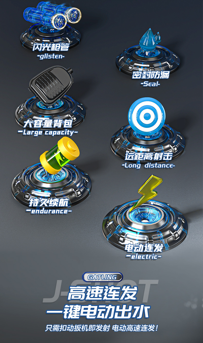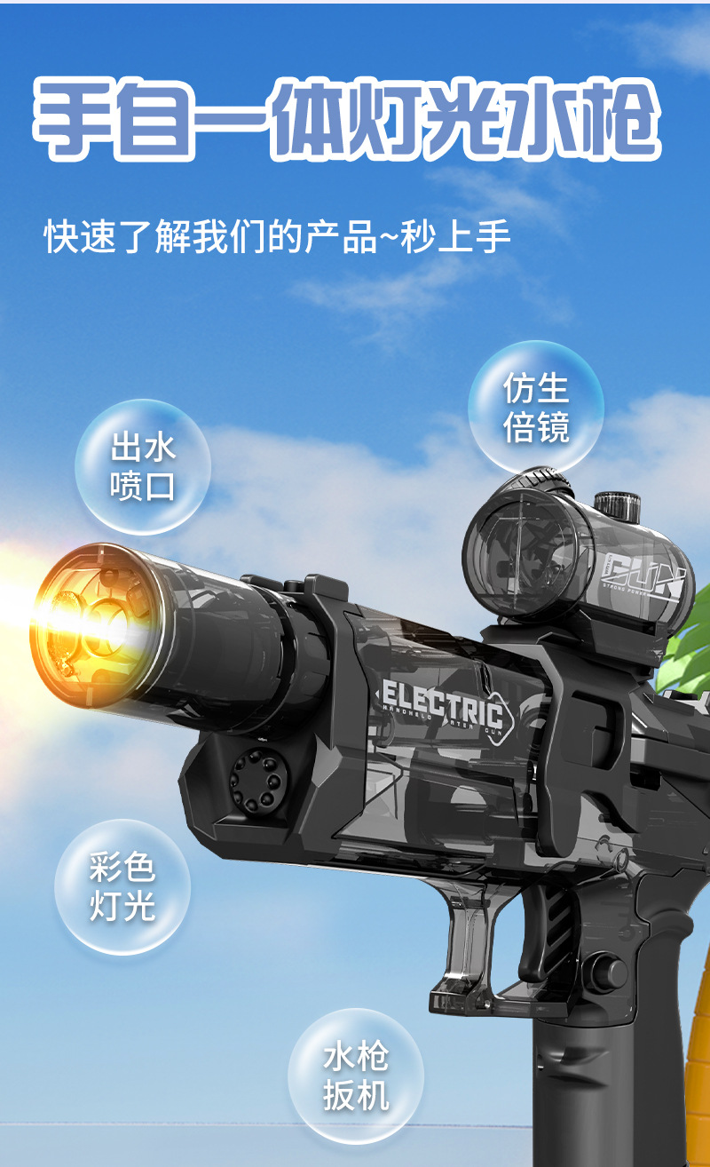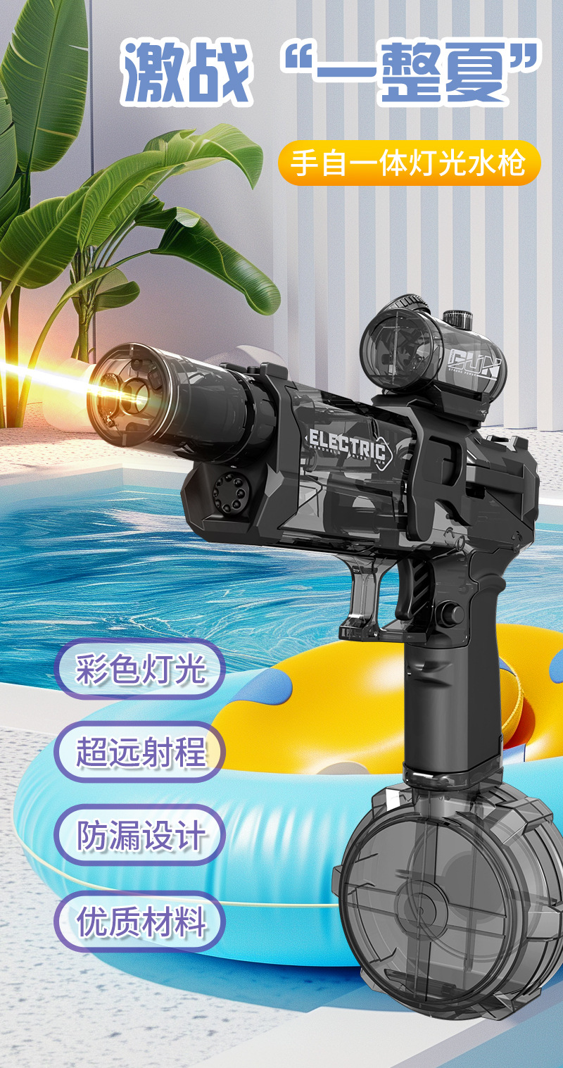 더블 튜브 회전 개틀 워터 건 전기 대용량 고압 강력한 소년 장난감 싸우는 물 총스토어 가기