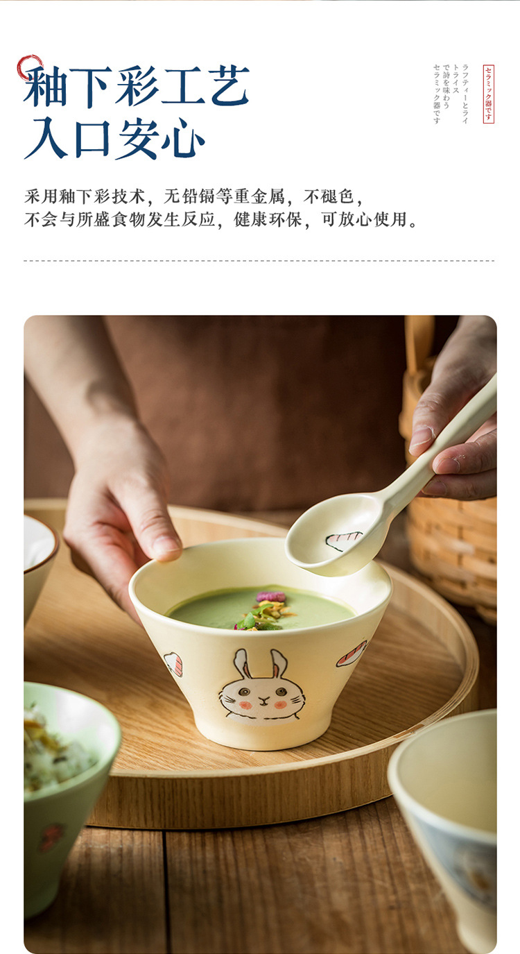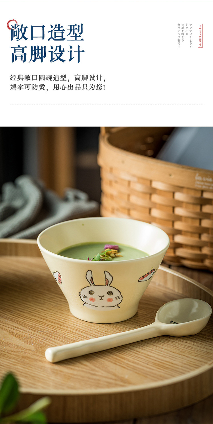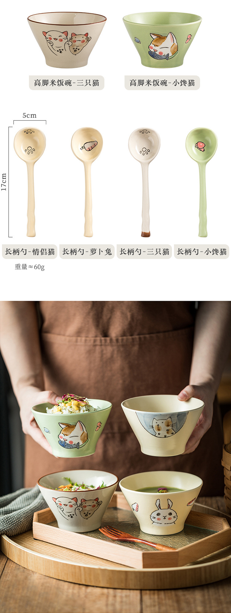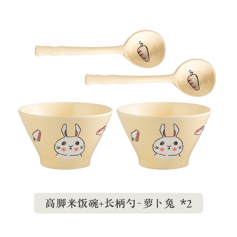 • 긴 손잡이 숟가락 무 토끼 (2 팩) 와 다리가 높은 밥 그릇